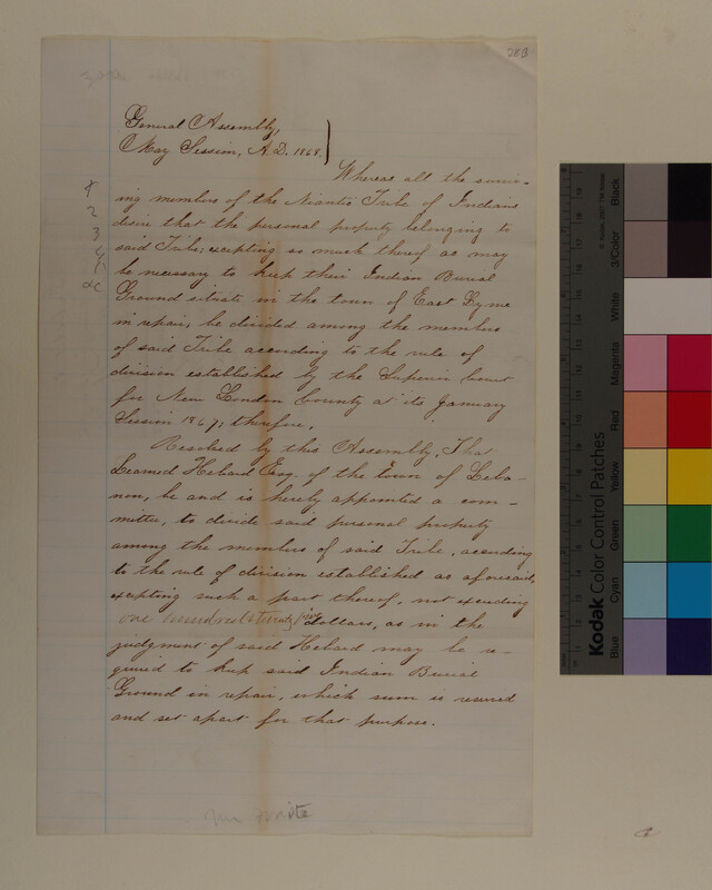 Summons for the Pequot Tribe relative to the Petition of Moses Sampson and Others of the Pequot Tribe