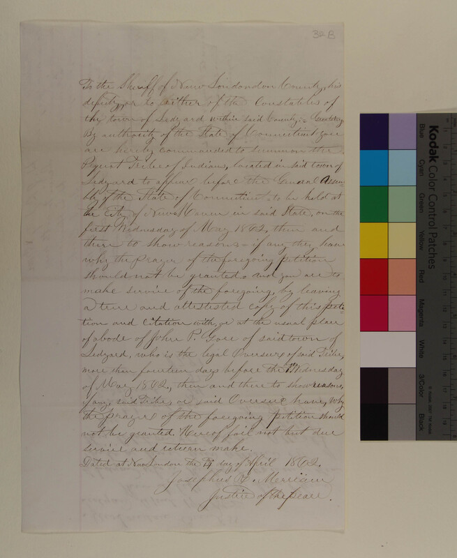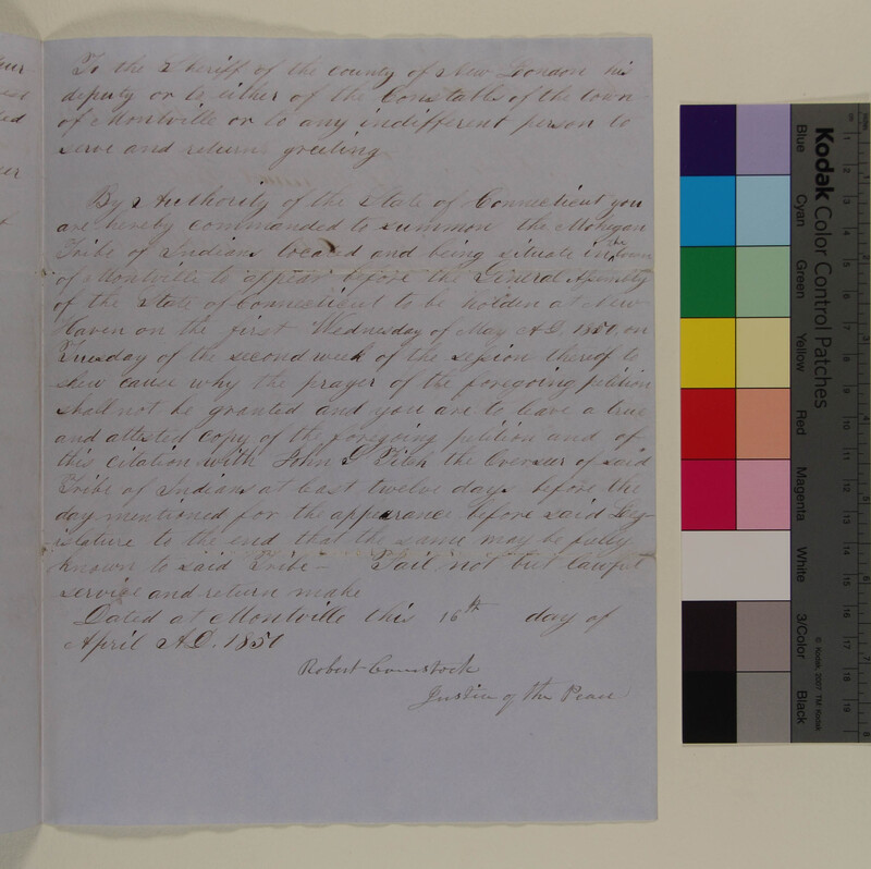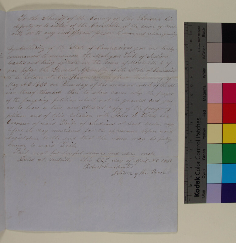 Summons for the Mohegan Tribe relative to the Petition of Henry Matthews and Others of the Mohegan Tribe