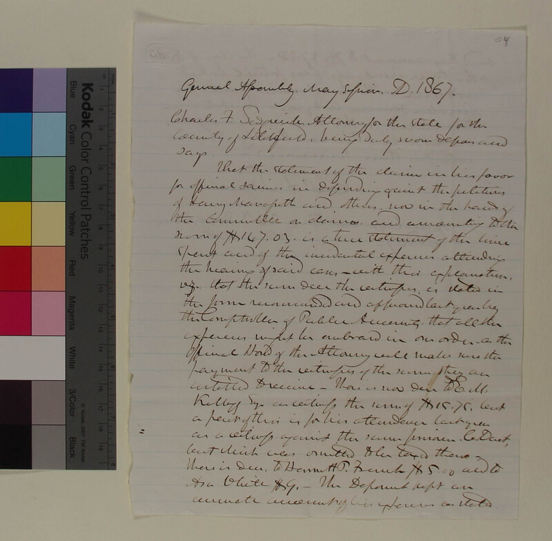 Testimony of Charles Sedgewick concerning his Receipt for Defending against the Petition of Henry Manasseth