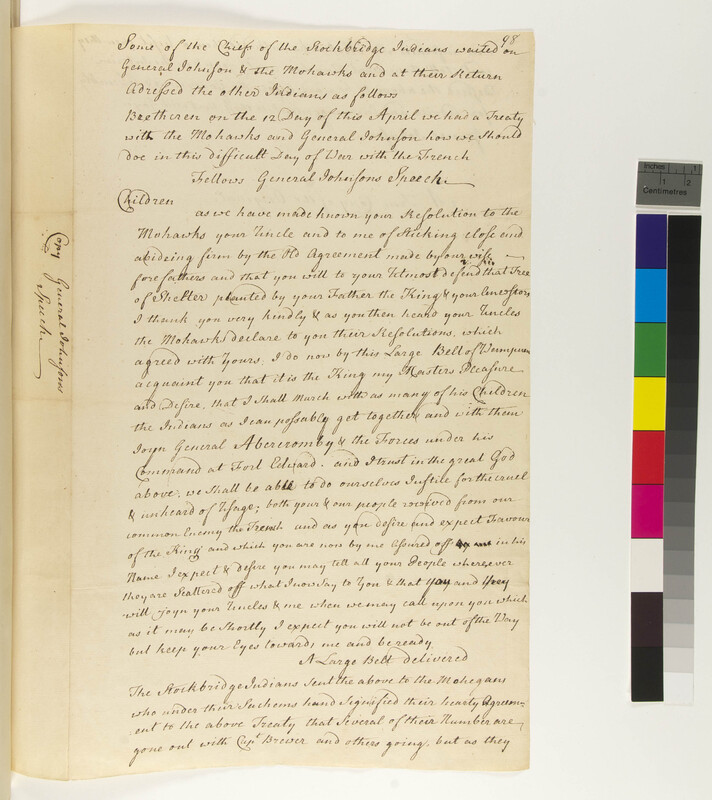 Stockbridge Chief's Address with a Speech by Sir William Johnson