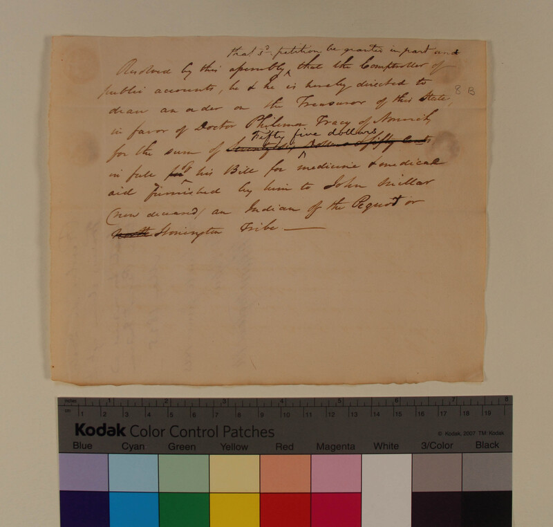 Resolution on the Petition of Doctor Philemon Tracy Seeking Compensation for Services Provided a Member of the Eastern Pequot Tribe