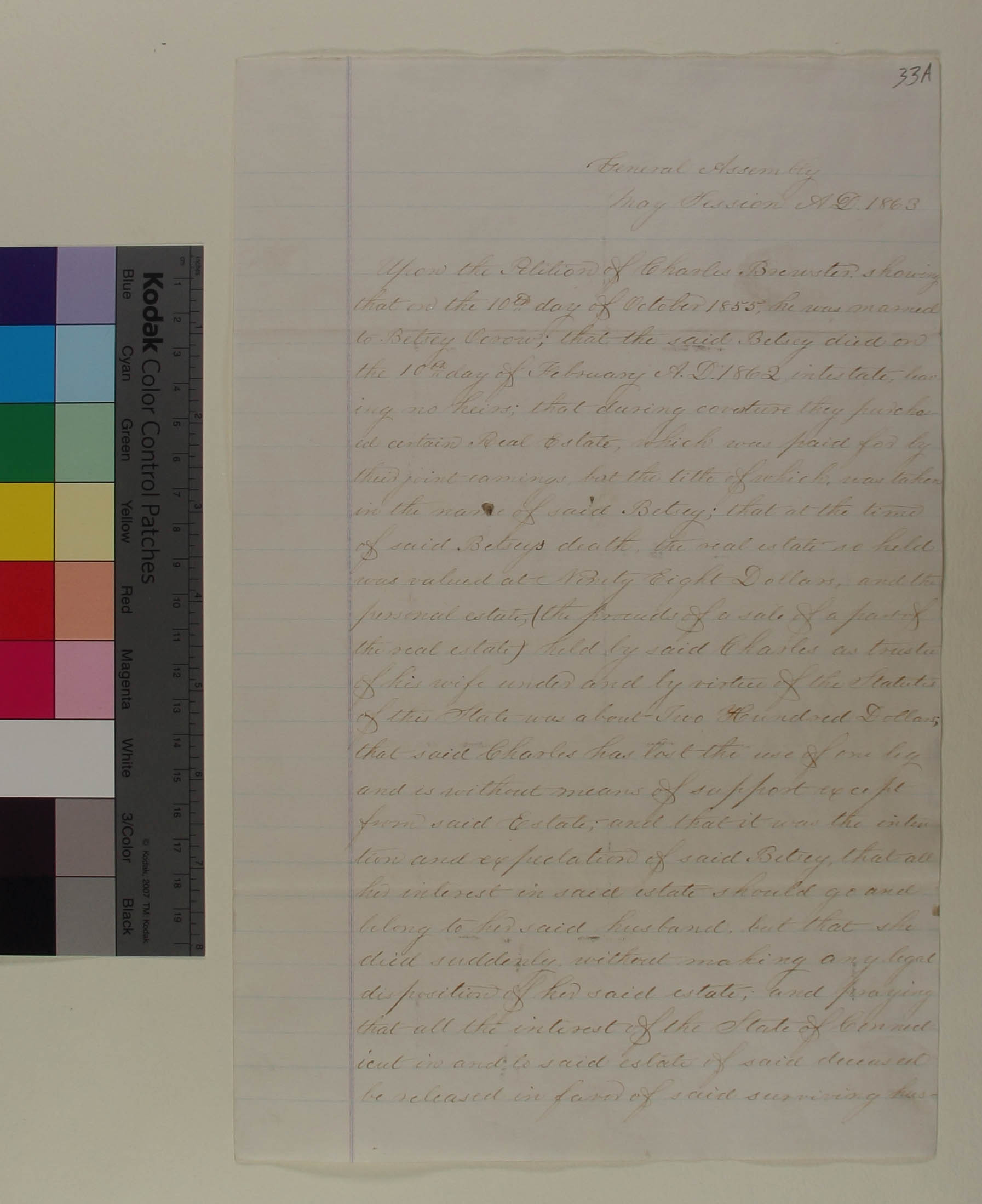 Resolution upon the Petition of Charles Brewster Seeking Release of the Estate of Betsy Occra