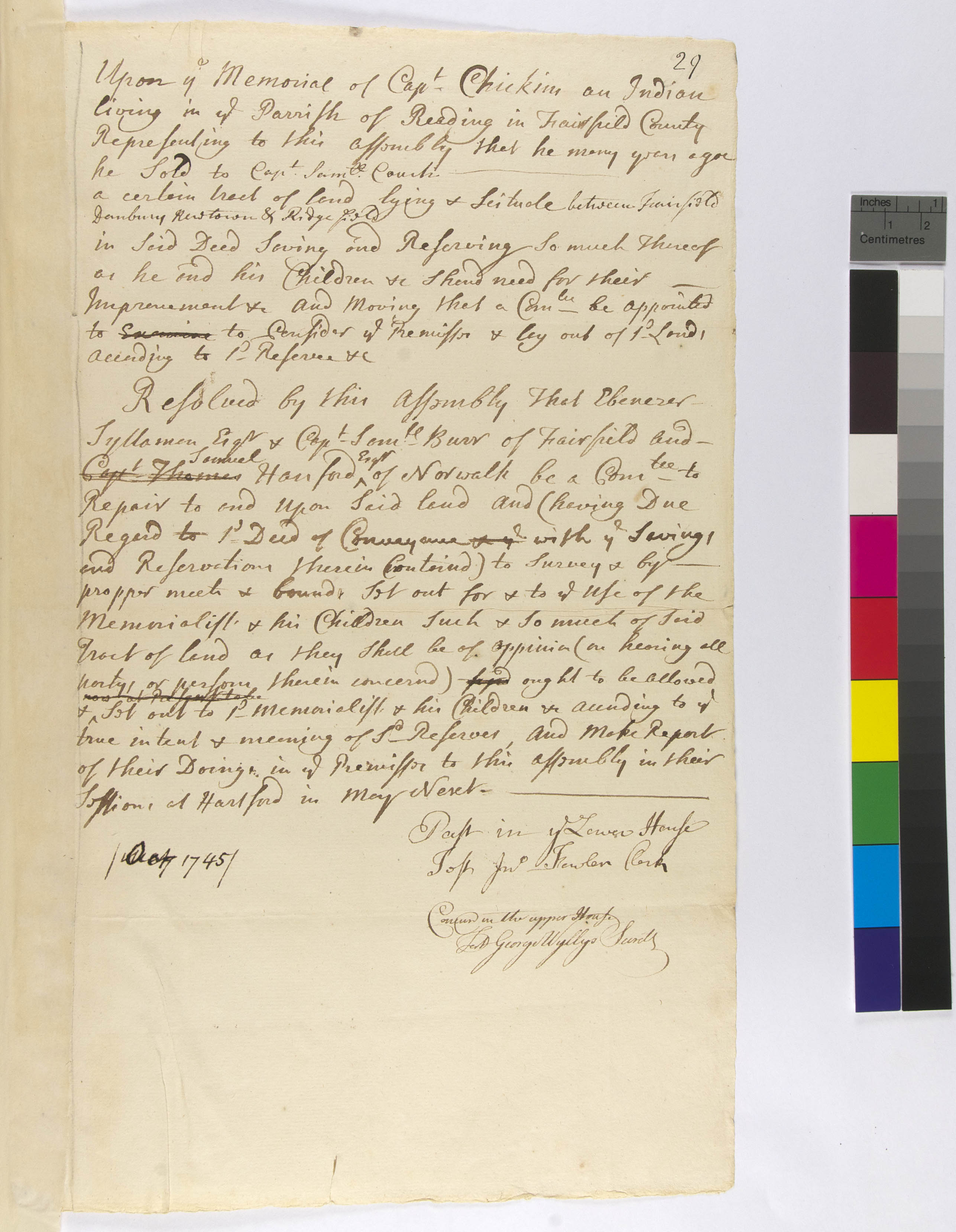 Government -- Colonial -- Colony of Connecticut -- General Assembly -- Committees; Government -- Colonial -- Colony of Connecticut -- General Assembly; Land -- Conveyances -- Deed/Title; Land -- Description -- Boundaries; Land -- Survey; Land -- Use -- Improvement; Land; Law -- Legislative Process -- Acts/Resolves -- Accepted; Law -- Legislative Process -- Appointment; Law -- Legislative Process -- Petitions -- Accepted; Relations -- Colonial Affairs; Relations -- Tribal Affairs; Tribes/Communities -- Pequonnock (Fairfield County); YIPP -- Colony of Connecticut Collection, 1603-1783