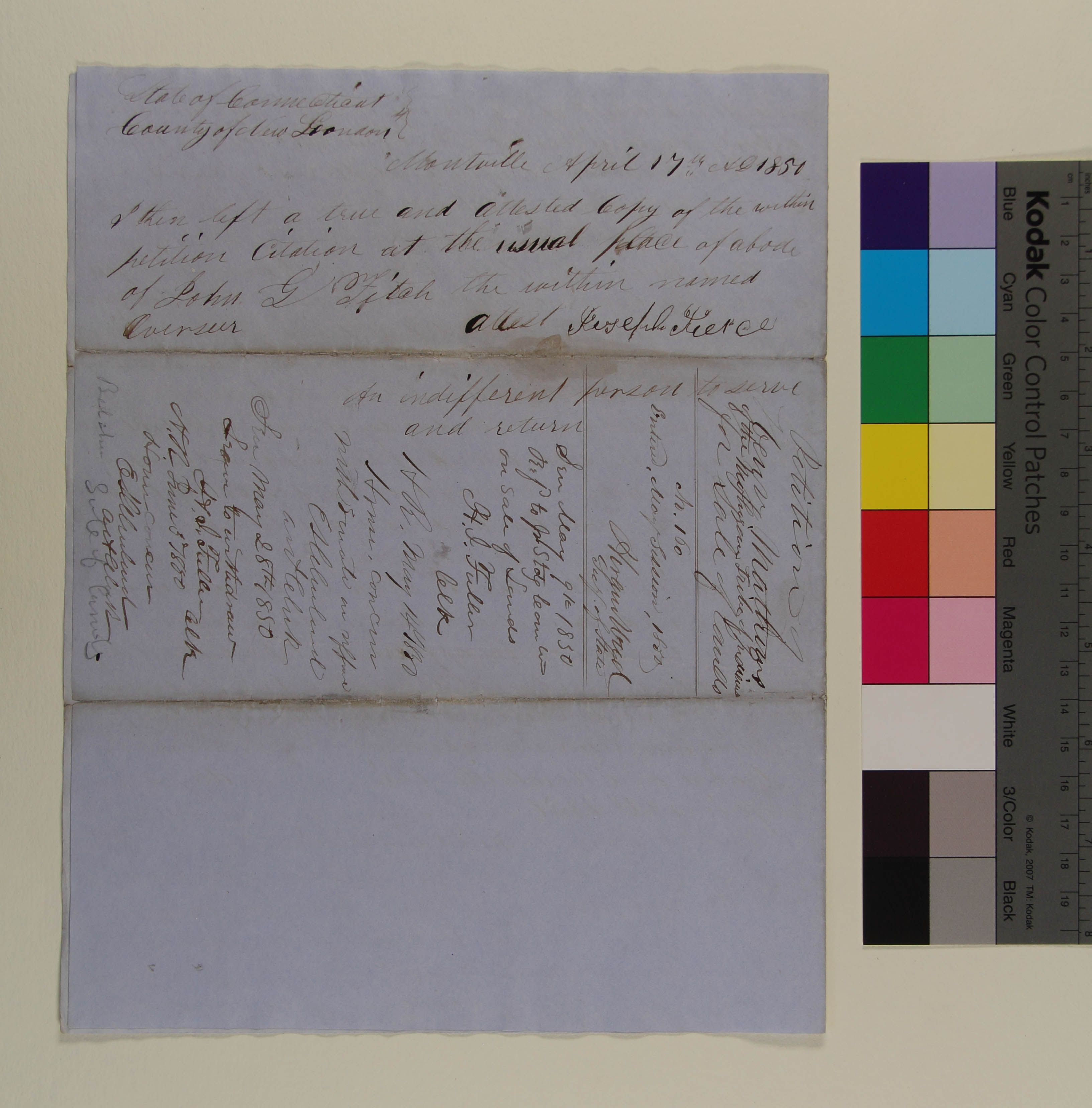 Government -- State -- Connecticut -- Agencies -- Overseers; Government -- State -- Connecticut -- General Assembly; Land -- Conveyances -- Sale -- Request; Land -- Reservation/Reserve -- Mohegan; Law -- Procedure -- Summons; Tribes/Communities -- Mohegan; YIPP -- State of Connecticut Collection, 1784-1869