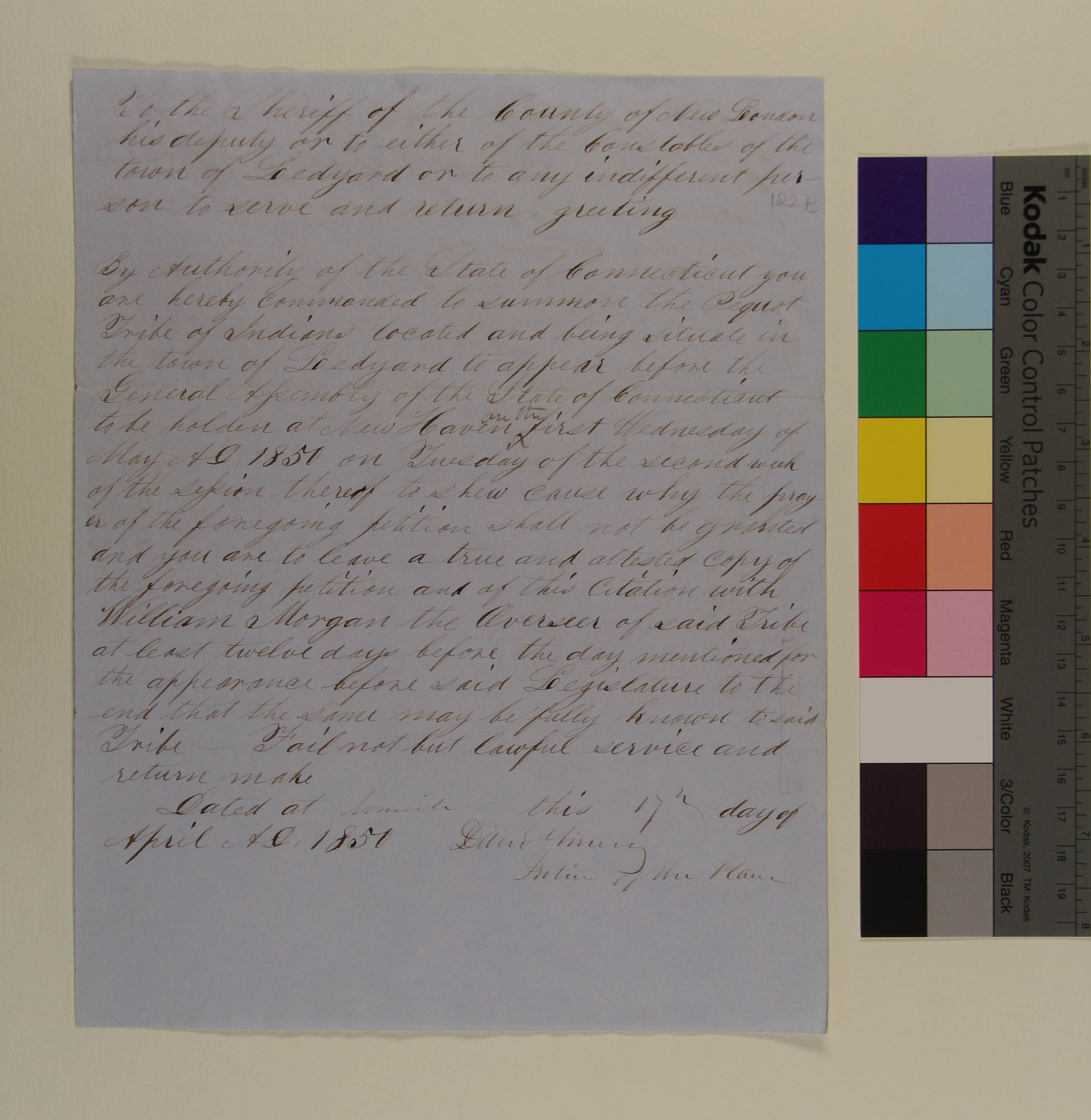Summons for the Pequot Tribe relative to the Petition of Moses Sampson and Others of the Pequot Tribe