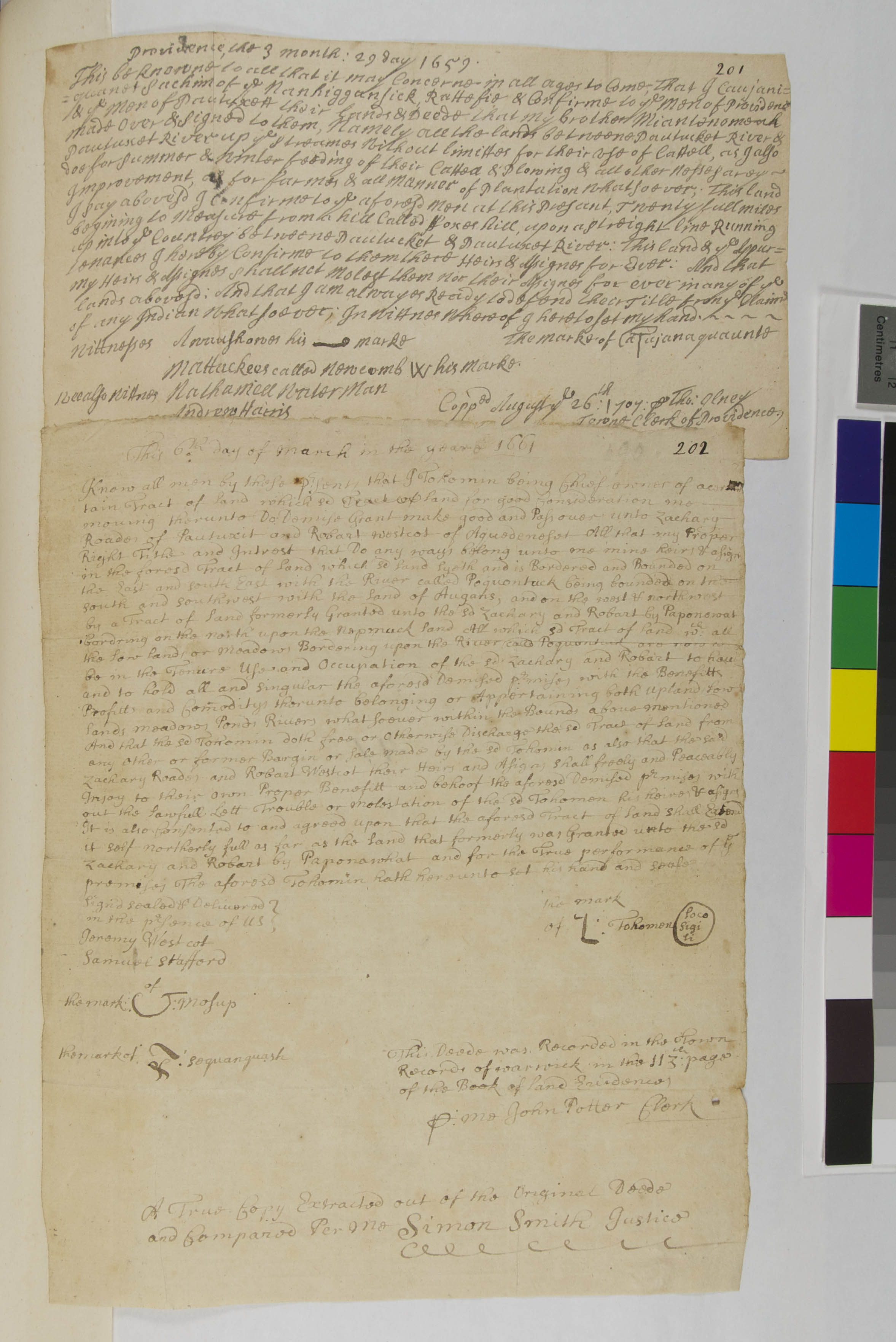 Caujanaquaunte's Deed to Pautuxet Lands (Copy), May 29, 1659, (1659.05.29.00), Grant-Costa, Paul, et. al., eds., Yale Indian Papers Project, Yale University, http://jake.library.yale.edu:8080/neips/data/html/1659.05.29.00/1659.05.29.00.html.