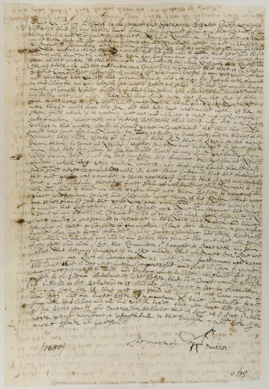 Ackenach (Mentioned within document); Cassasinamon, Robin, -1692 (Mentioned within document); Connecticut General Assembly (Recipient); Mamoho (Mentioned within document); Owaneco, 1640- (Mentioned within document); Uncas, 1590-1683 (Mentioned within document); Uncas, Joshua (Mentioned within document); Uncas, Josias, -1690 (Mentioned within document); Wompomb (Mentioned within document)