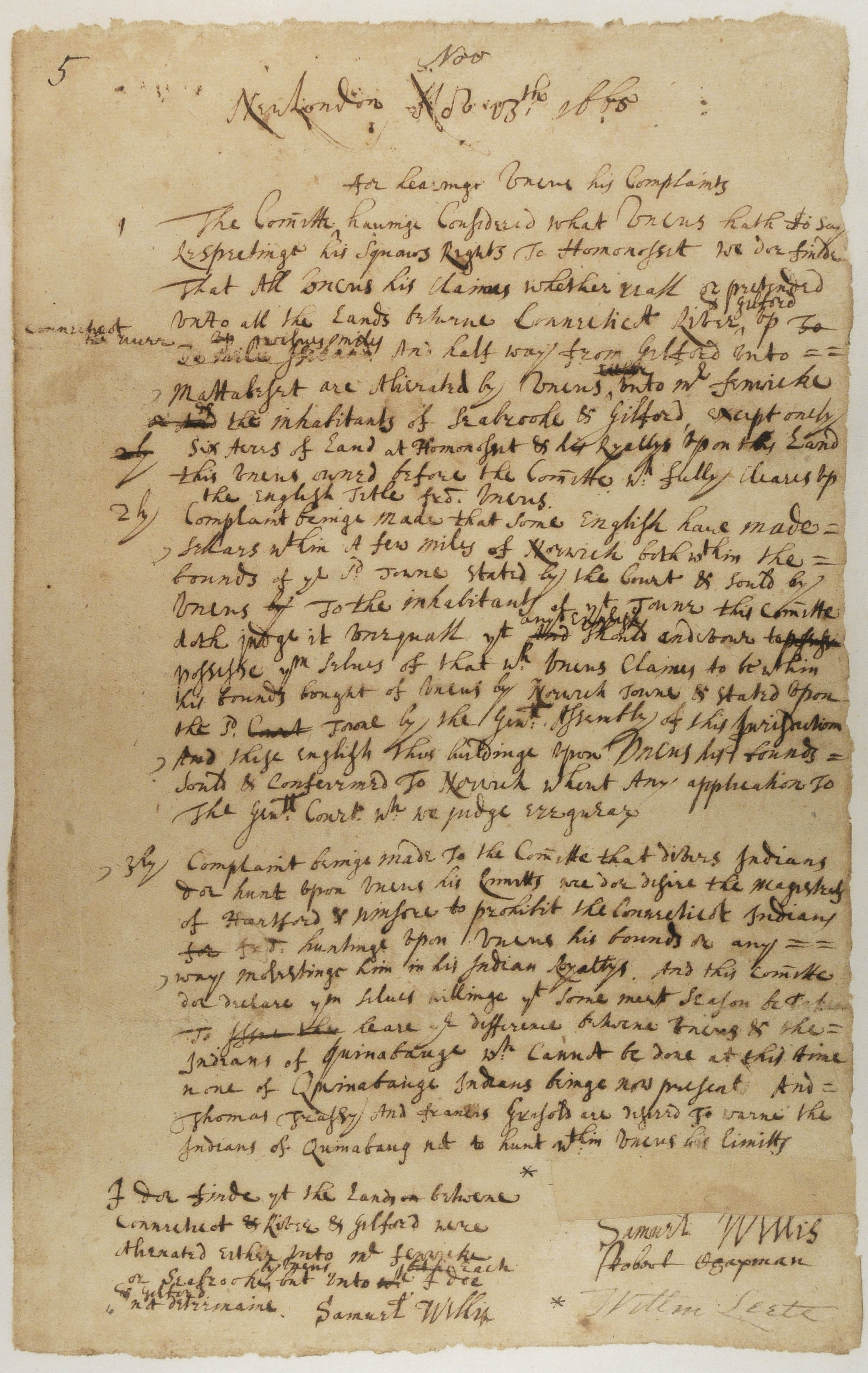 Committee Report concerning Uncas' Complaints, November 13, 1665, (1665.11.13.00), Grant-Costa, Paul, and Tobias Glaza, eds., Yale Indian Papers Project, Yale University, http://jake.library.yale.edu:8080/neips/data/html/1665.11.13.00/1665.11.13.00.html.