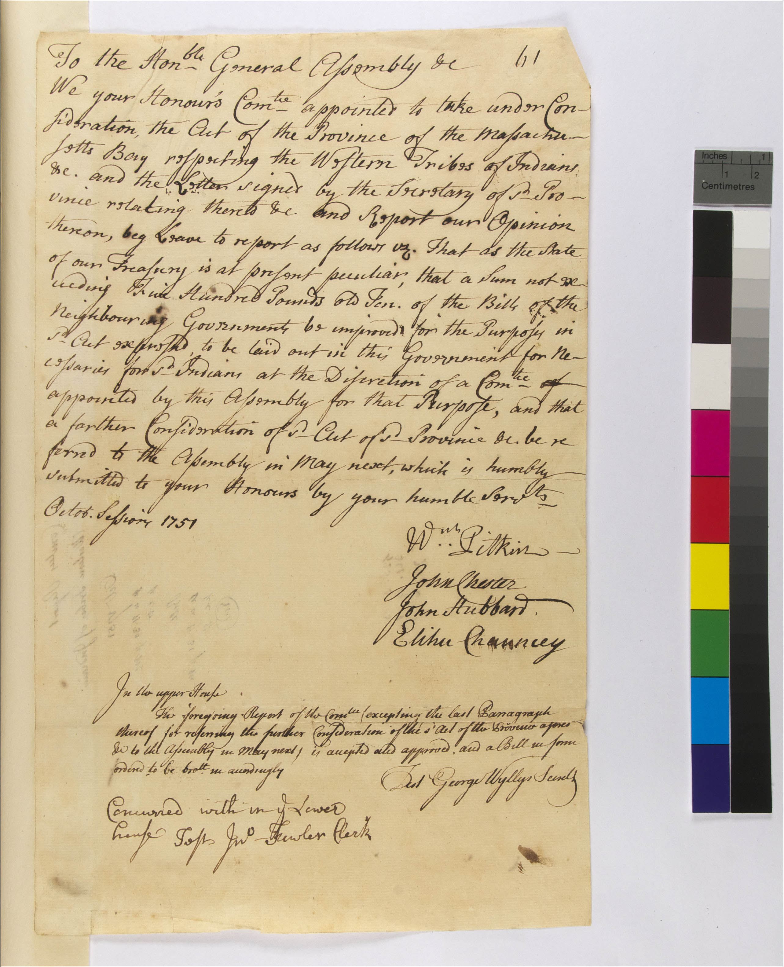 Accounting/Finance -- Funds; Education/Schools -- Financial Assistance; Education/Schools -- Missions -- Massachusetts -- Stockbridge -- Timothy Woodbridge (1743); Education/Schools -- Students; Government -- Colonial -- Colony of Connecticut -- General Assembly; Government -- Colonial -- Massachusetts Bay Colony; Government -- Colonial -- Province of New York -- General Assembly; Law -- Legislative Process -- Reports -- Accepted; Relations -- Colonial Affairs; Relations -- Tribal Affairs; Tribes/Communities -- Mohawk; Tribes/Communities -- Six Nations; Tribes/Communities -- Stockbridge; Tribes/Communities -- Western Indians; YIPP -- Colony of Connecticut Collection, 1603-1783