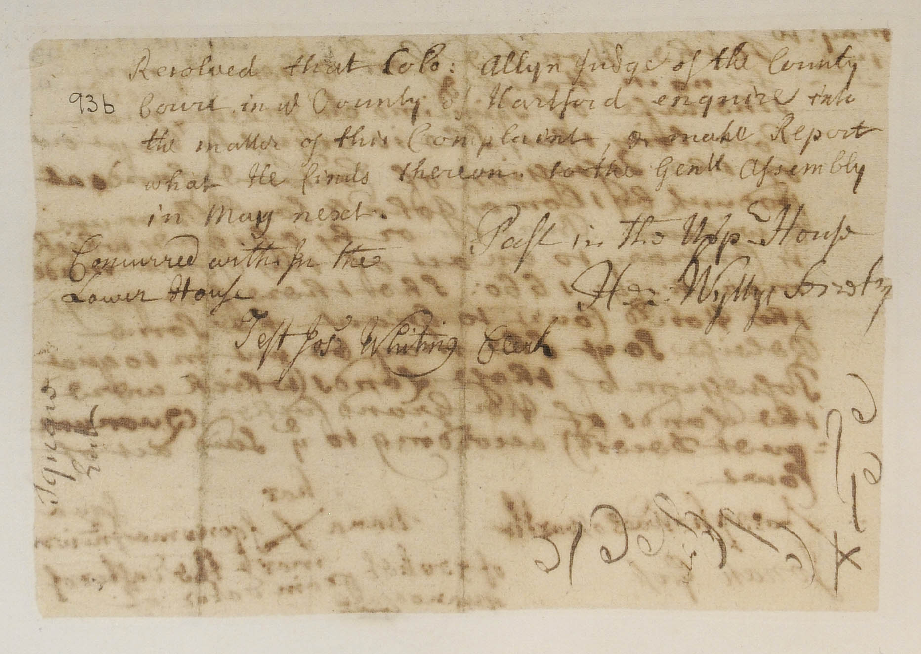 Allyn, Matthew, 1661-1758 (Mentioned within document); Burnham, Samuel (Mentioned within document); Burnham, William (Mentioned within document); Connecticut General Assembly (Recipient); Gross, Jonah (Witness); John, Thomas (Mentioned within document); Quanampewott (Mentioned within document); Seacutt (Mentioned within document); Squinimo (Mentioned within document); Squinimo, Hana (Mentioned within document); Wadsworth, Joseph (Witness); Whiting, Joseph (Attestor); Wyllys, Hezekiah, 1672-1741 (Attestor)