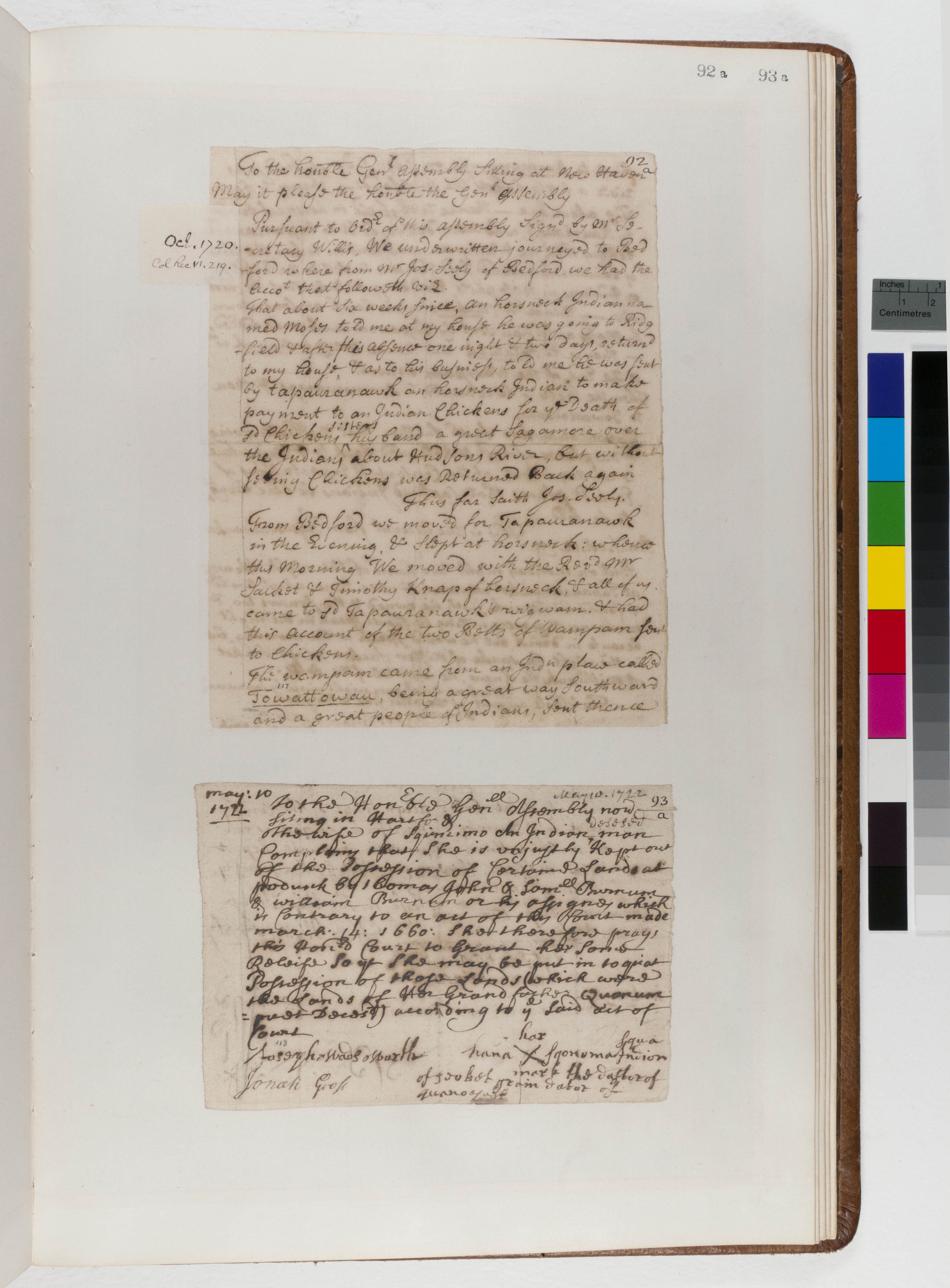Complaint of Hana Squinimo, May 10, 1722, (1722.05.10.01), Grant-Costa, Paul, and Tobias Glaza, eds., Yale Indian Papers Project, Yale University, http://jake.library.yale.edu:8080/neips/data/html/1722.05.10.01/1722.05.10.01.html.