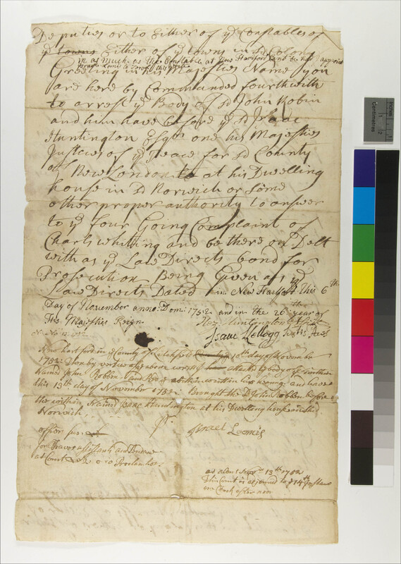 Complaint, Summons and Arrest of John Robins, November 6, 1752, (1752.09.23.00), Grant-Costa, Paul, et. al., eds., Yale Indian Papers Project, Yale University, http://jake.library.yale.edu:8080/neips/data/html/1752.09.23.00/1752.09.23.00.htm