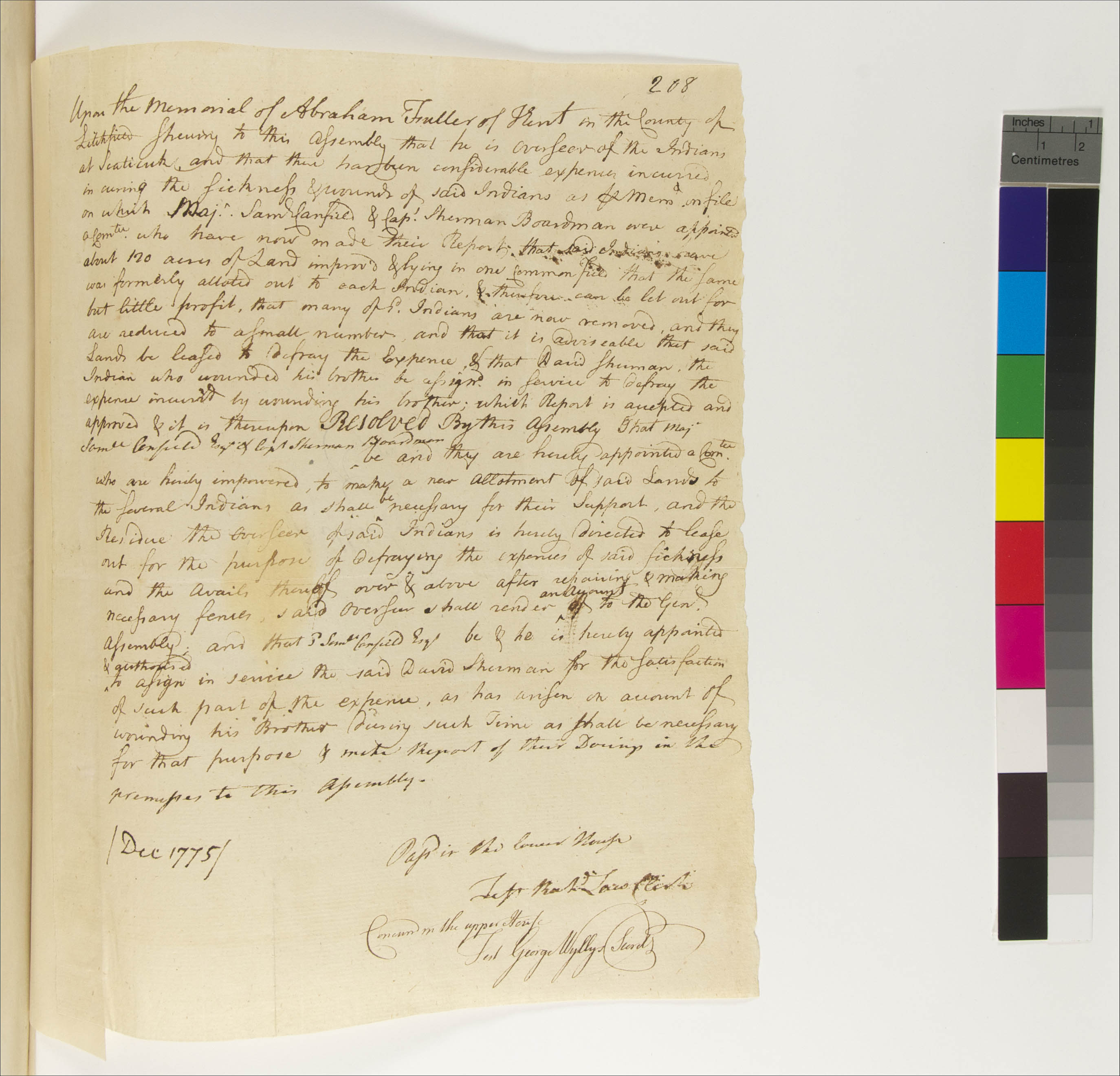 Connecticut General Assembly Resolve on the Memorial of Abraham Fuller, December 1775, (1775.12.00.00), Grant-Costa, Paul, et. al., eds., Yale Indian Papers Project, Yale University, http://jake.library.yale.edu:8080/neips/data/html/1775.12.00.00/1775.12.00.00.html.