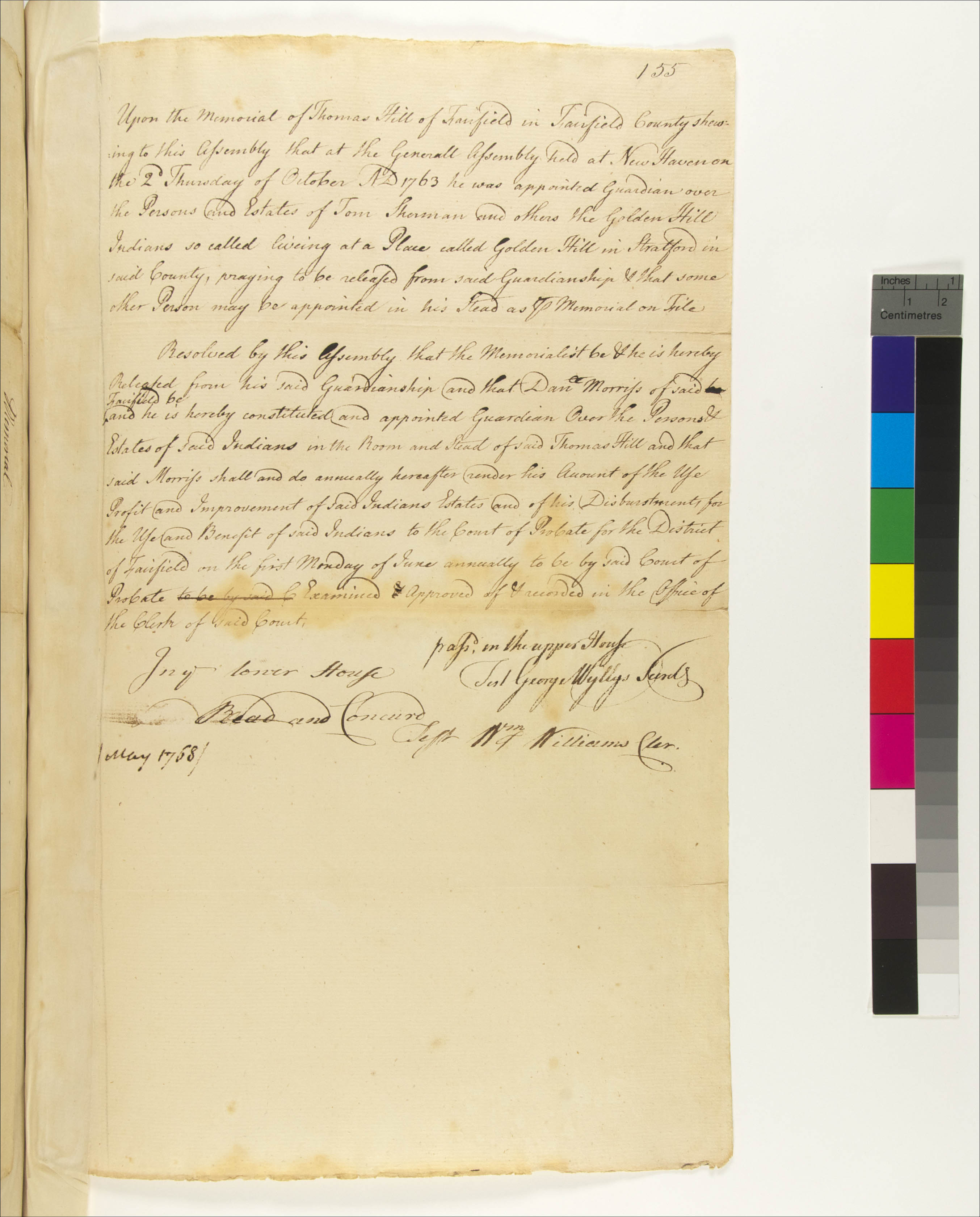 Government -- Colonial -- Colony of Connecticut -- General Assembly; Government -- Colonial -- Colony of Connecticut -- Guardians/Overseers; Government -- Tribal -- Paugusset, Golden Hill; Law -- Legislative Process -- Petitions -- Accepted; Relations -- Colonial Affairs; Relations -- Guardianship; Relations -- Tribal Affairs; Tribes/Communities -- Paugusset -- Golden Hill; Tribes/Communities -- Pequonnock (Fairfield County); YIPP -- Colony of Connecticut Collection, 1603-1783