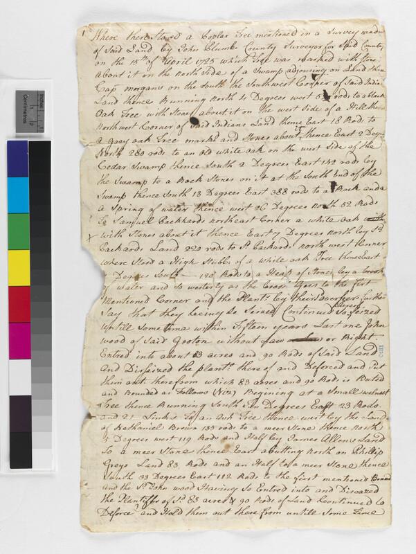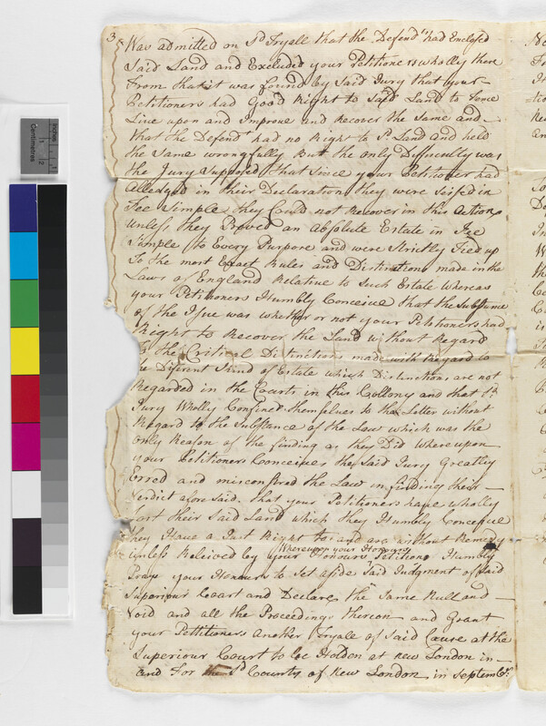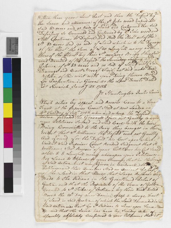 Culture -- Inheritance; Government -- Colonial -- Colony of Connecticut -- County Court -- New London County; Government -- Colonial -- Colony of Connecticut -- General Assembly; Government -- Colonial -- Colony of Connecticut -- Guardians/Overseers; Government -- Colonial -- Colony of Connecticut -- Superior Court -- New London; Government -- Tribal -- Pequot -- Western; Land -- Complaints -- Boundary Disputes; Land -- Description -- Boundaries; Land -- Reservation/Reserve -- Pequot -- Western; Land -- Use -- Improvement -- Agriculture; Land -- Use -- Improvement -- Fences; Landforms -- Aquatic -- Brooks; Landforms -- Aquatic -- Swamps -- Great Cedar Swamp; Law -- Civil Actions -- Case Names -- Pequot v. William Williams, Jr; Law -- Civil Actions -- Procedure -- Appeals; Law -- Civil Actions -- Procedure -- Resolve; Law -- Civil Actions -- Property Issues -- Title/Ownership; Law -- Civil Actions -- Property Issues -- Trespass; Relations -- Colonial Affairs; Relations -- Tribal Affairs; Repository -- Connecticut Historical Society; Tribes/Communities -- Pequot -- Western; YIPP -- Colony of Connecticut Collection, 1603-1783
