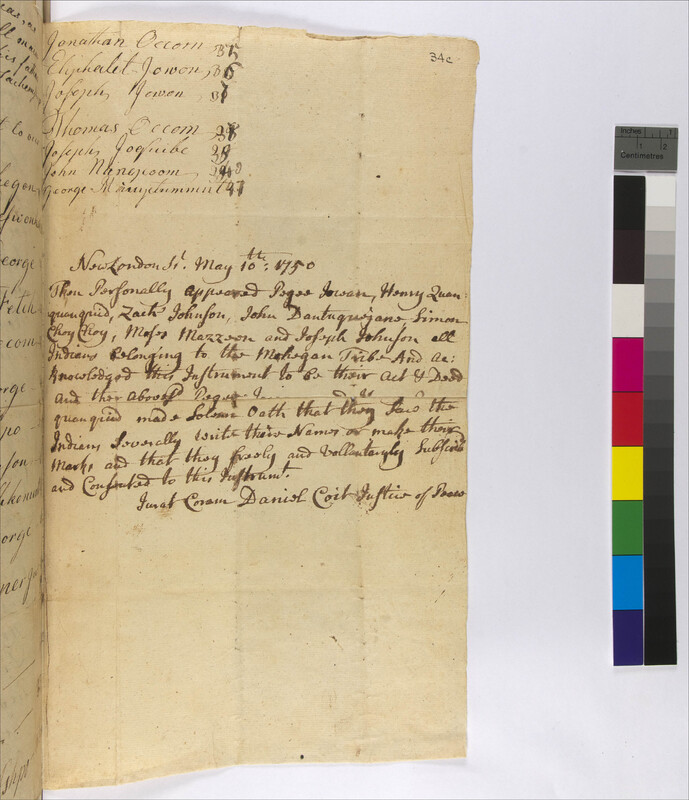Declaration of the Mohegan Indians on the Election of Benjamin Uncas, June 19, 1749, (1749.06.19.00), Grant-Costa, Paul, et. al., eds., Yale Indian Papers Project, Yale University, http://jake.library.yale.edu:8080/neips/data/html/1749.06.19.00/1749.06.19.00.html.