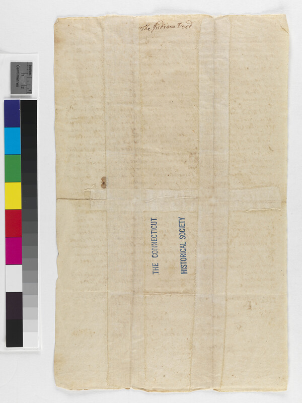 Clothing -- Coats; Commerce/Trade -- Clothing/Dress; Culture -- Fishing/Hunting; Government -- Colonial -- Colony of Connecticut; Government -- Tribal -- Wangunk; Land -- Conveyances -- Deed/Title; Land -- Description -- Boundaries; Land -- Reservation/Reserve -- Wangunk; Landforms -- Aquatic -- Rivers -- Connecticut; Landforms -- Aquatic -- Rivers -- Mattabesit; Landforms -- Terrestrial -- Islands -- Thirty Mile Island; Landforms -- Terrestrial -- Meadows -- Pattaquonk; Relations -- Colonial Affairs; Relations -- Tribal Affairs; Repository -- Connecticut Historical Society; Tribes/Communities -- Mohegan; Tribes/Communities -- River Indians; YIPP -- Colony of Connecticut Collection, 1603-1783