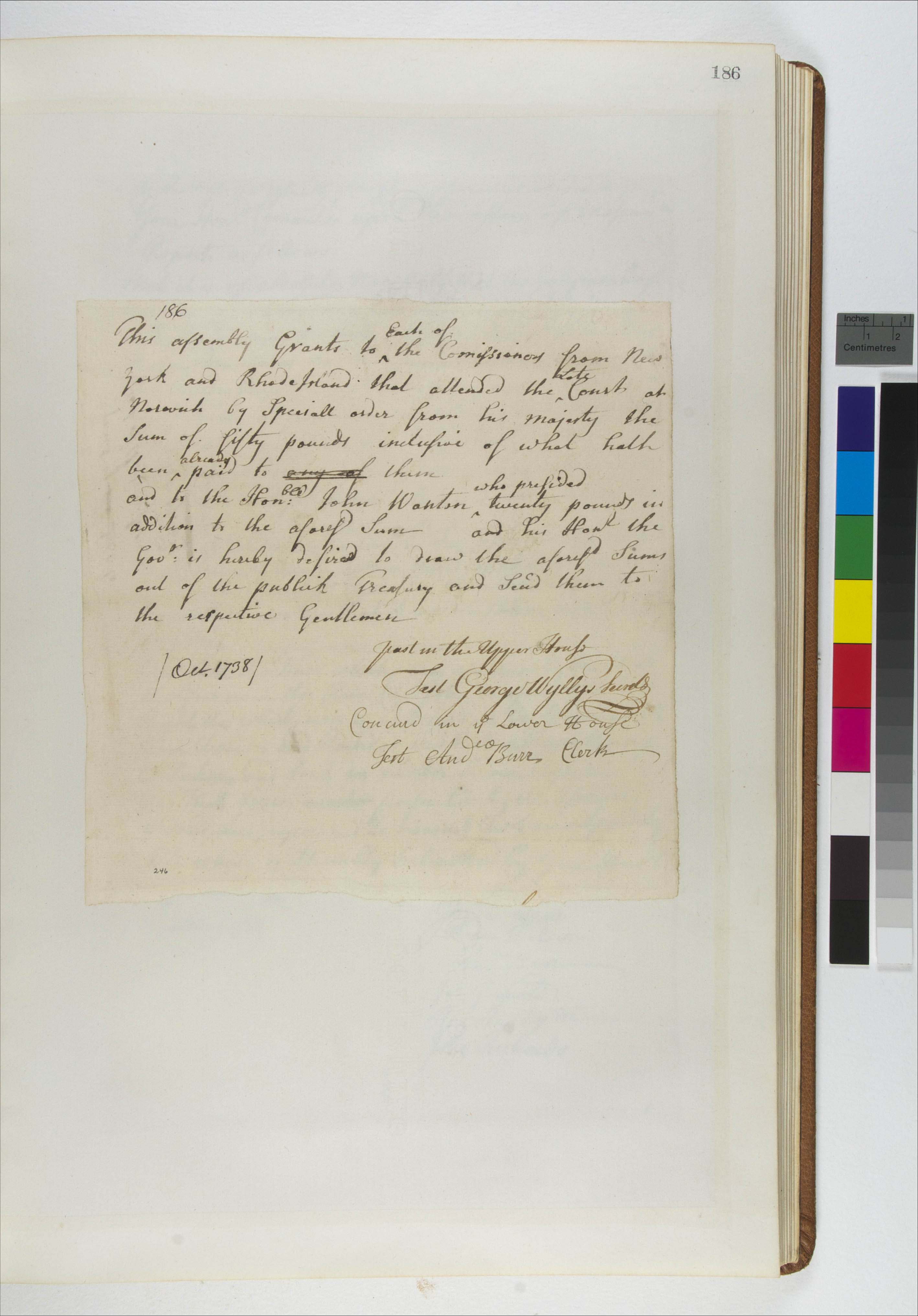 Burr, Andrew (Attestor); Wanton, John (Mentioned within document); Wyllys, George, 1710-1796 (Attestor)