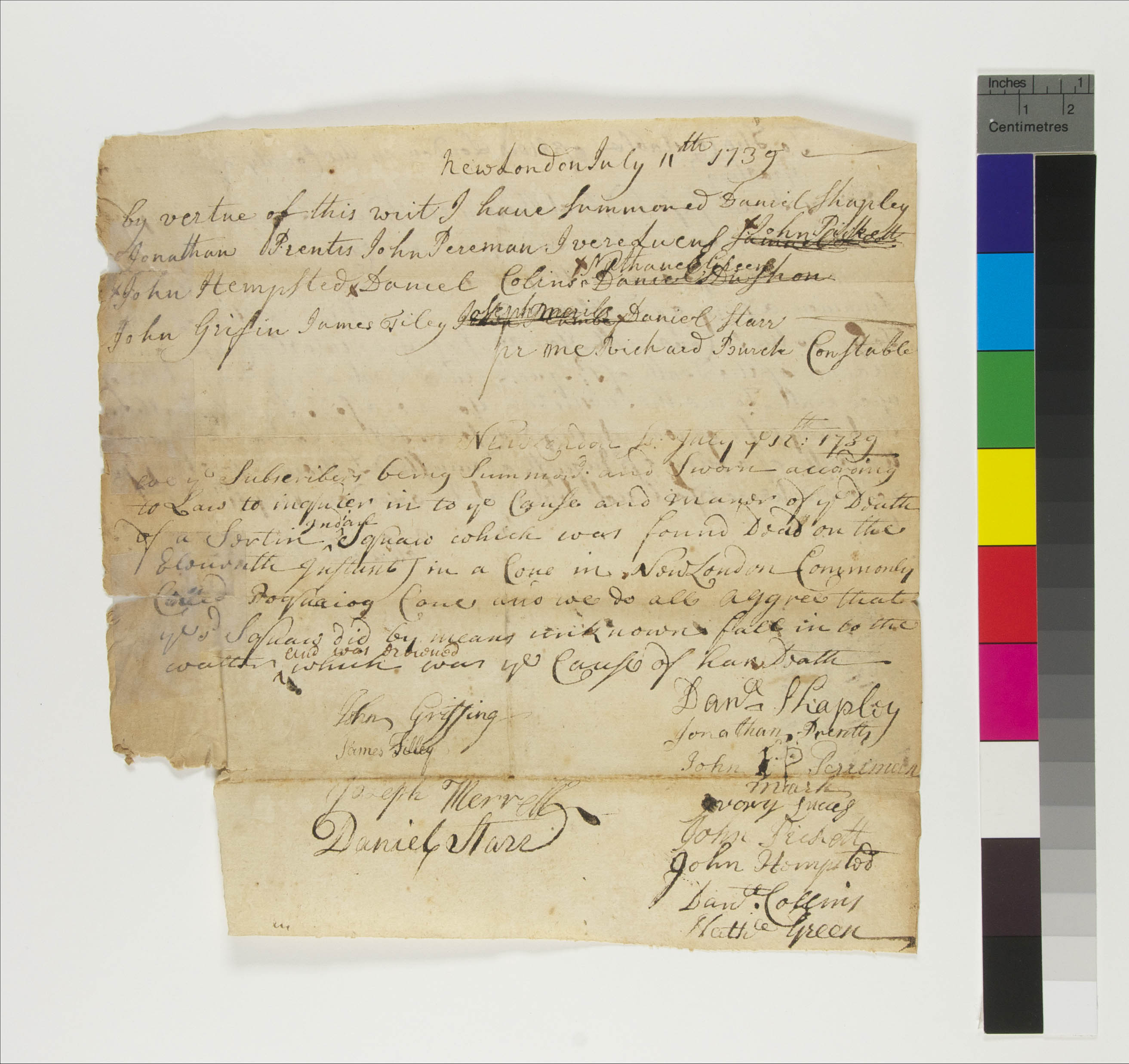 Landforms -- Aquatic -- Coves; Law -- Criminal Actions -- Coronerís Inquests; Tribes/Communities -- Unknown/Foreign; Vital Records -- Deaths; YIPP -- Colony of Connecticut Collection, 1603-1783