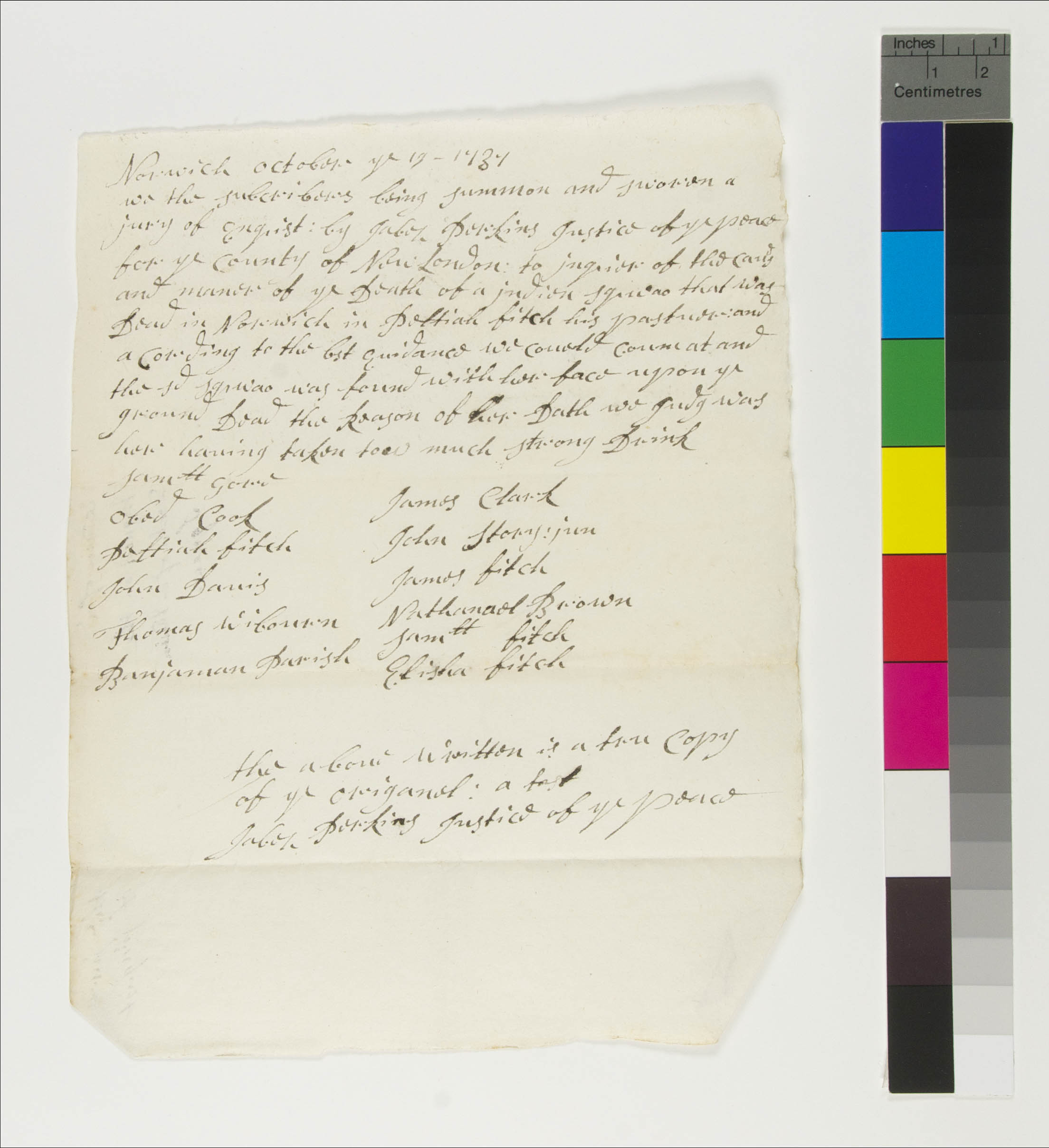 Culture -- Alcohol Consumption; Food/Drink -- Alcohol; Land -- Use -- Improvement -- Pasture; Law -- Criminal Actions -- Coronerís Inquests; Vital Records -- Deaths -- Accidental; YIPP -- Colony of Connecticut Collection, 1603-1783