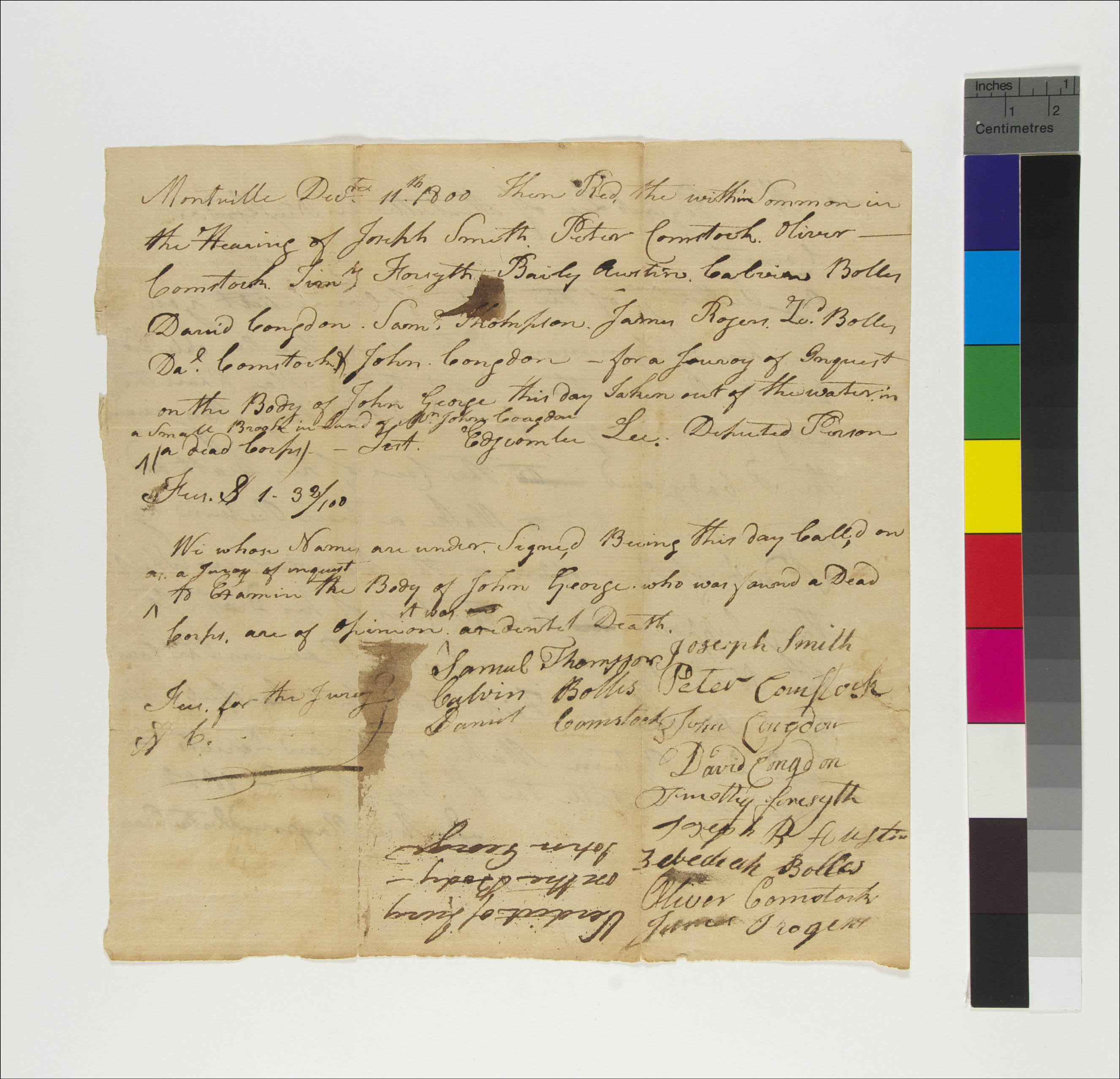 Landforms -- Aquatic -- Brooks; Law -- Criminal Actions -- Coronerís Inquests; Tribes/Communities -- Mohegan; Vital Records -- Deaths -- Accidental; YIPP -- State of Connecticut Collection, 1784-1869