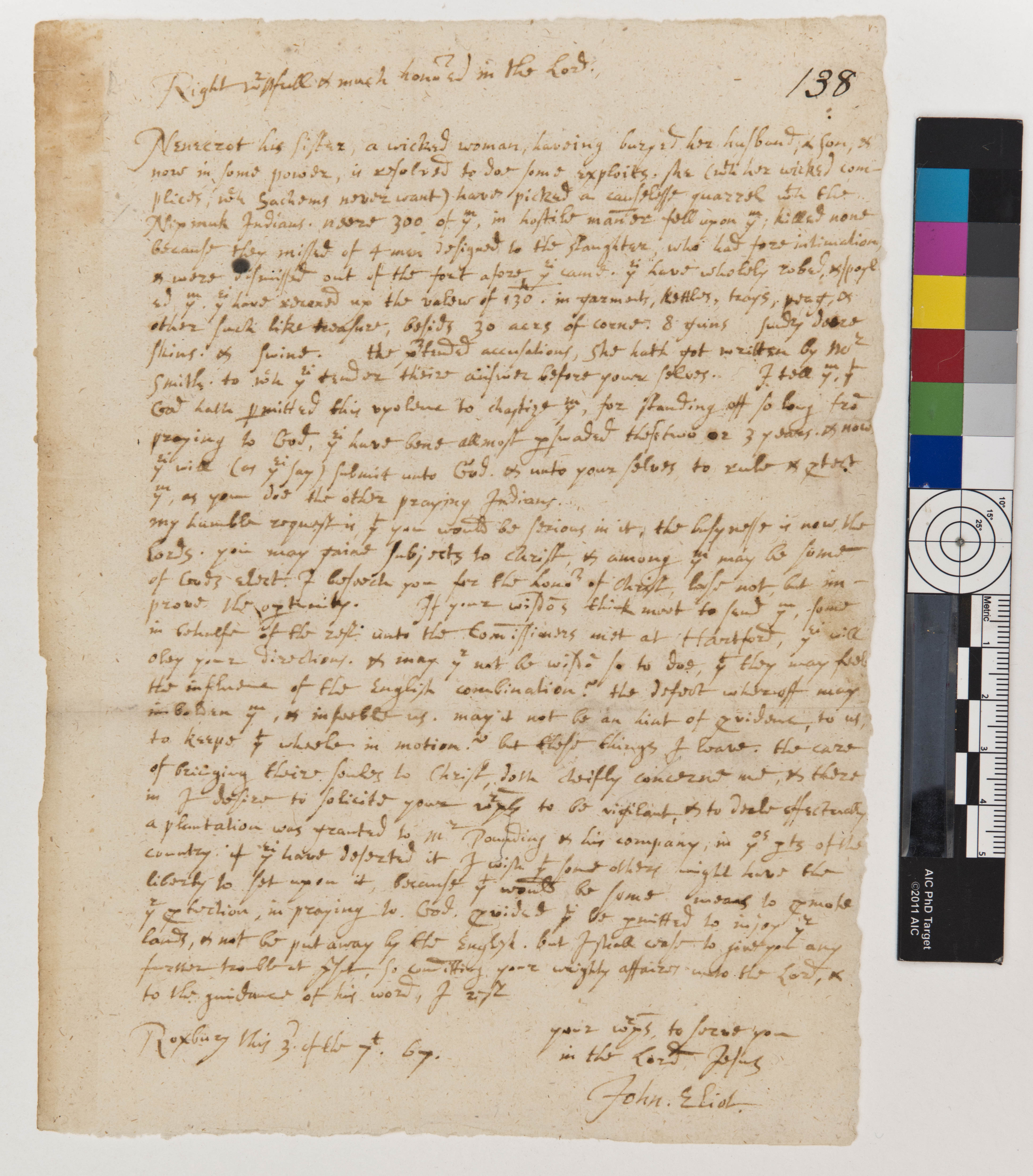 John Eliot's Letter about the Wrong Done to the Nipmuck Indians by the Narragansett