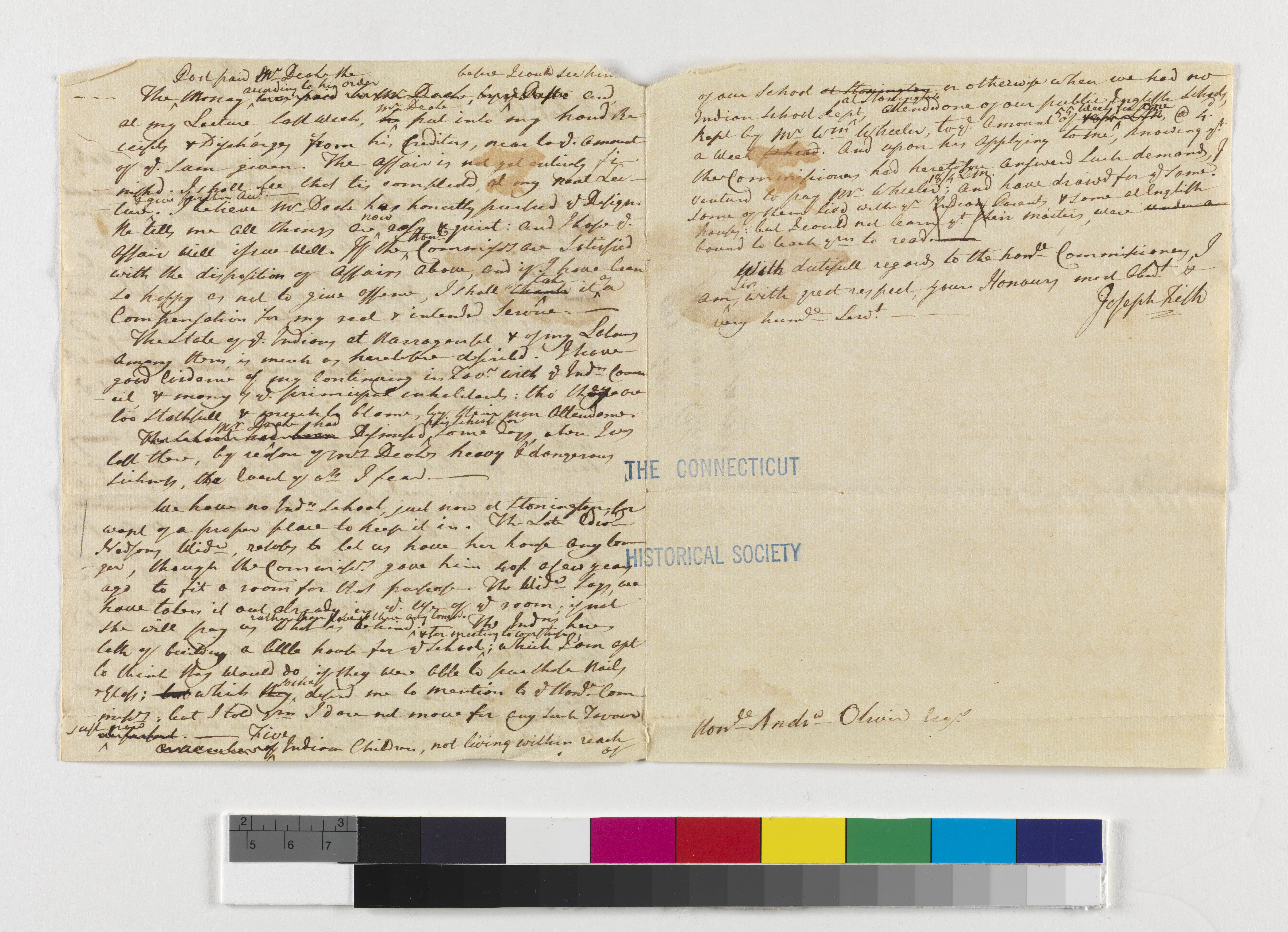 Letter from Joseph Fish to Andrew Oliver, May 14, 1771, (1771.05.14.00), Grant-Costa, Paul, et. al., eds., Yale Indian Papers Project, Yale University, http://jake.library.yale.edu:8080/neips/data/html/1771.05.14.00/1771.05.14.00.html.
