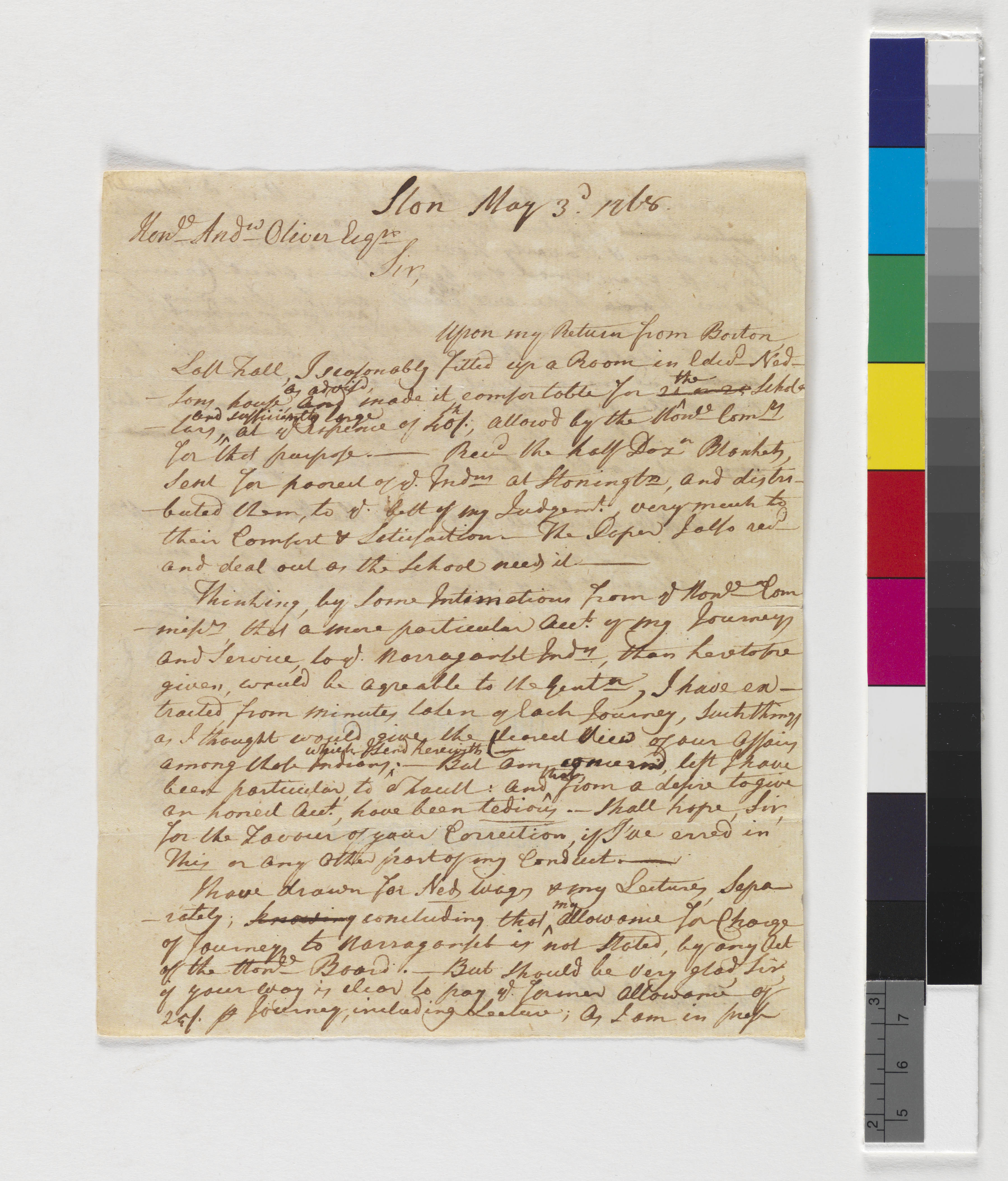 Letter from Joseph Fish to Andrew Oliver, May 3, 1768, (1768.05.03.00), Grant-Costa, Paul, et. al., eds., Yale Indian Papers Project, Yale University, http://jake.library.yale.edu:8080/neips/data/html/1768.05.03.00/1768.05.03.00.html.