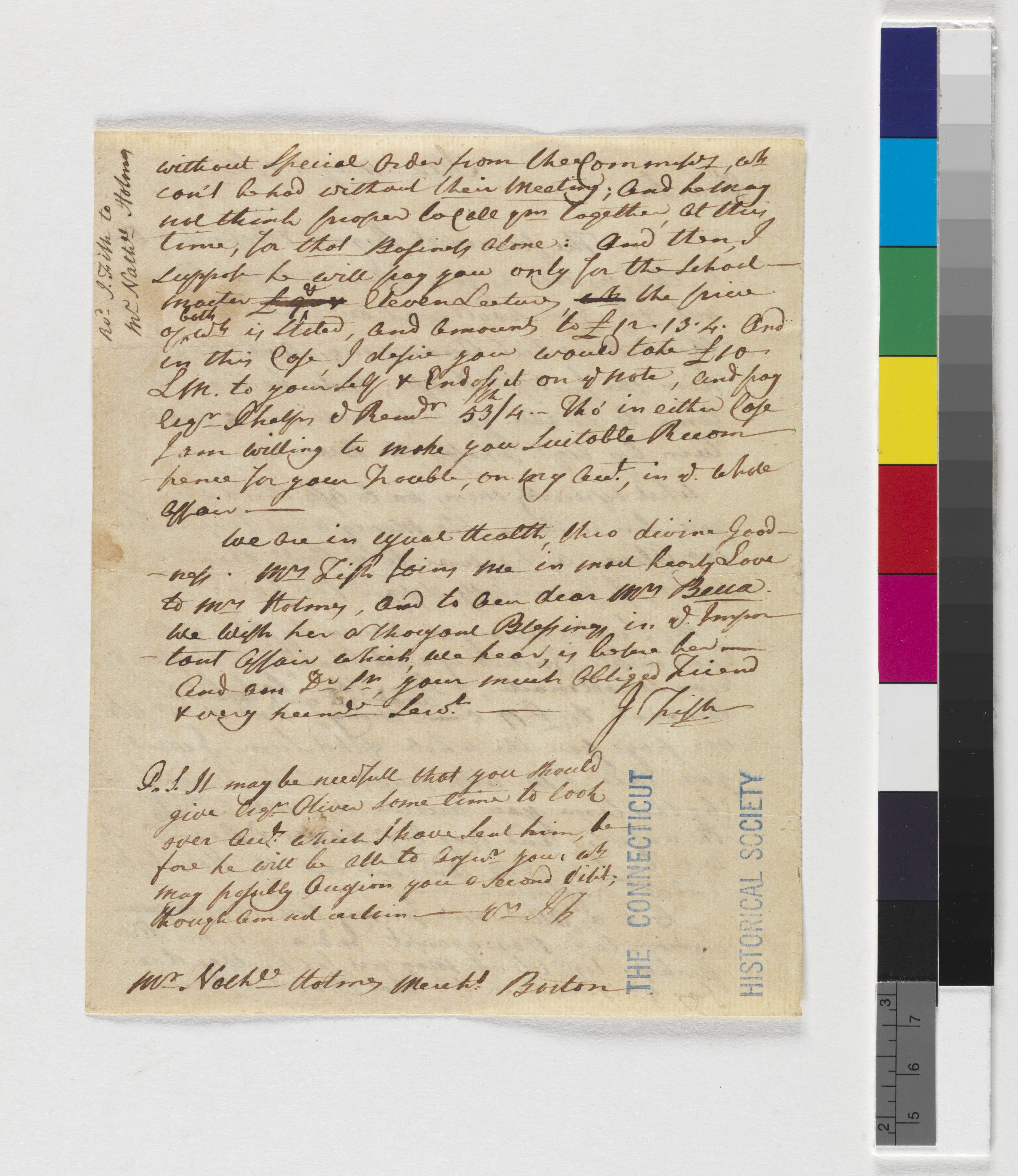 Letter from Joseph Fish to Nathan Holmes
