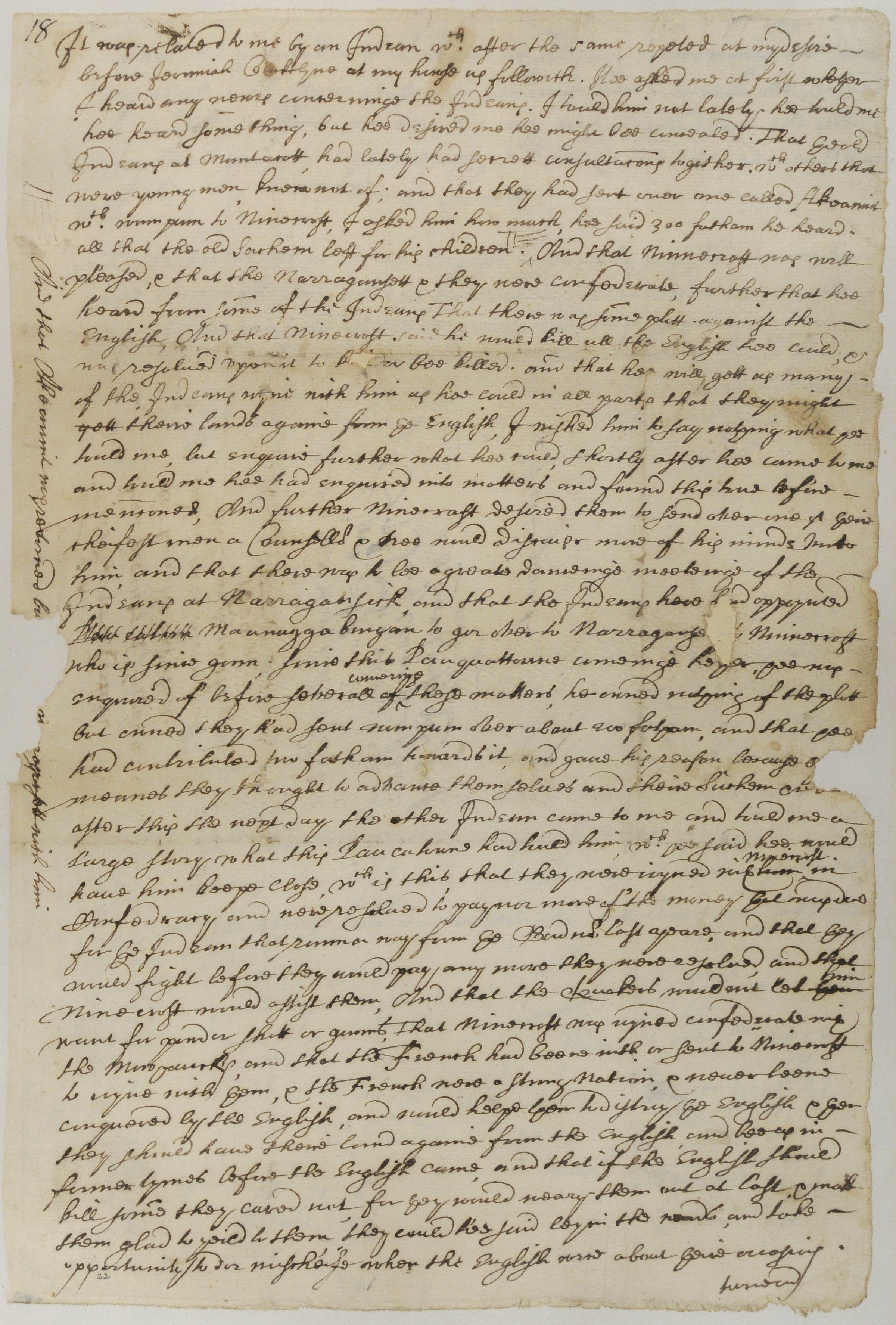 Abstract Ideas -- Fear/Anxiety; Culture -- Tribute; Geopolitics -- Canada/New France; Geopolitics -- Canadian Native Allies; Government -- Colonial -- Colony of Connecticut; Government -- Tribal -- Narragansett -- Sachems/Sagamores -- Ninigret (1637-1677); Landforms -- Terrestrial -- Islands -- Long Island; Landforms -- Terrestrial -- Islands; Military -- Indian Conspiracies; Relations -- Colonial Affairs; Relations -- Inter-Tribal Affairs -- Alliance; Relations -- Tribal Affairs; Religion/Beliefs -- Christianity -- Quakers; Tribes/Communities -- Mohawk; Tribes/Communities -- Montauk; Tribes/Communities -- Narragansett; YIPP -- Colony of Connecticut Collection, 1603-1783