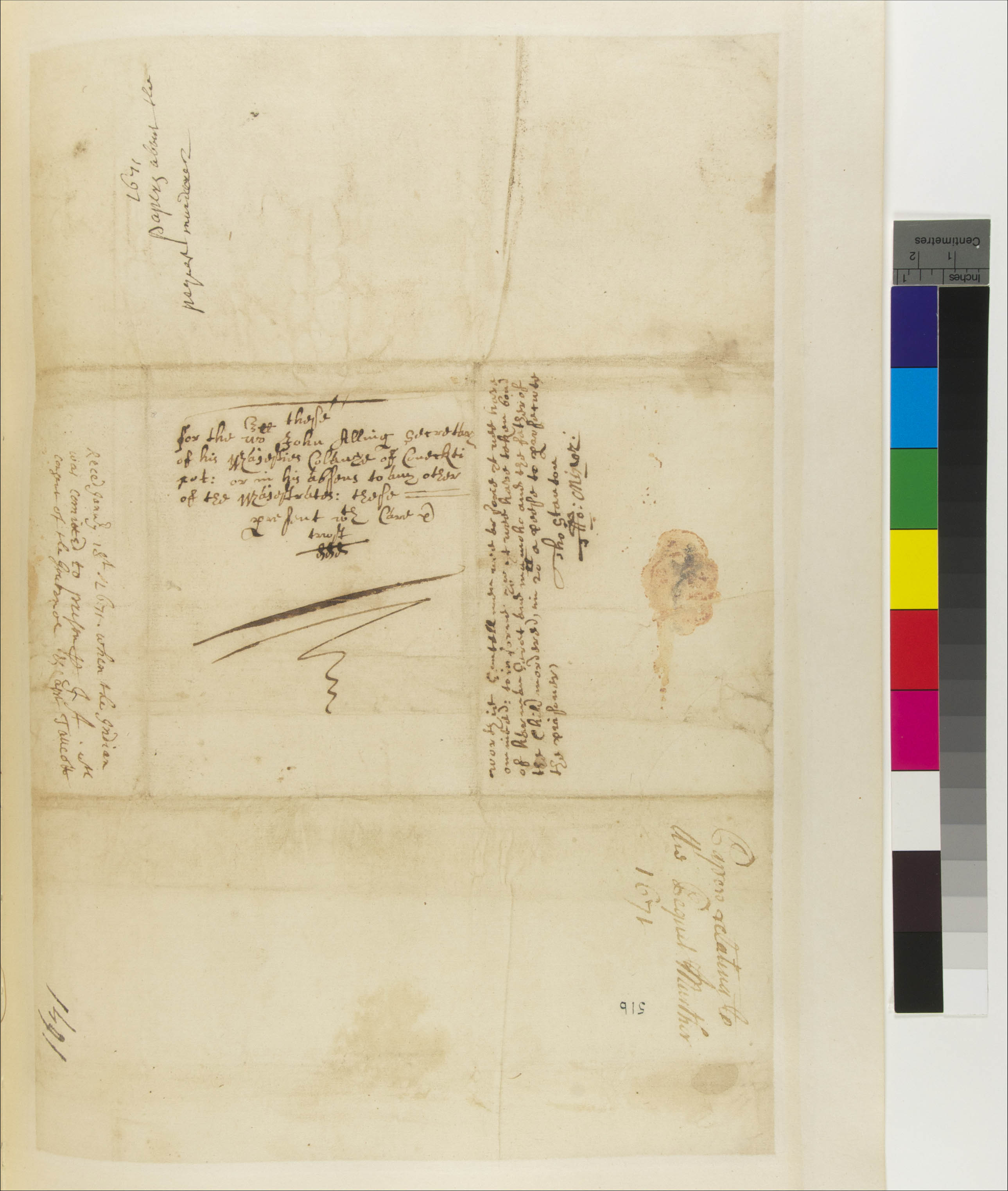 Allyn, John, 1631-1696 (Recipient); Garrett, Harman, -1678 (Mentioned within document); Mamoho (Mentioned within document); Moweem (Mentioned within document); Otongquenimen (Mentioned within document); Talcott, John (Mentioned within document)
