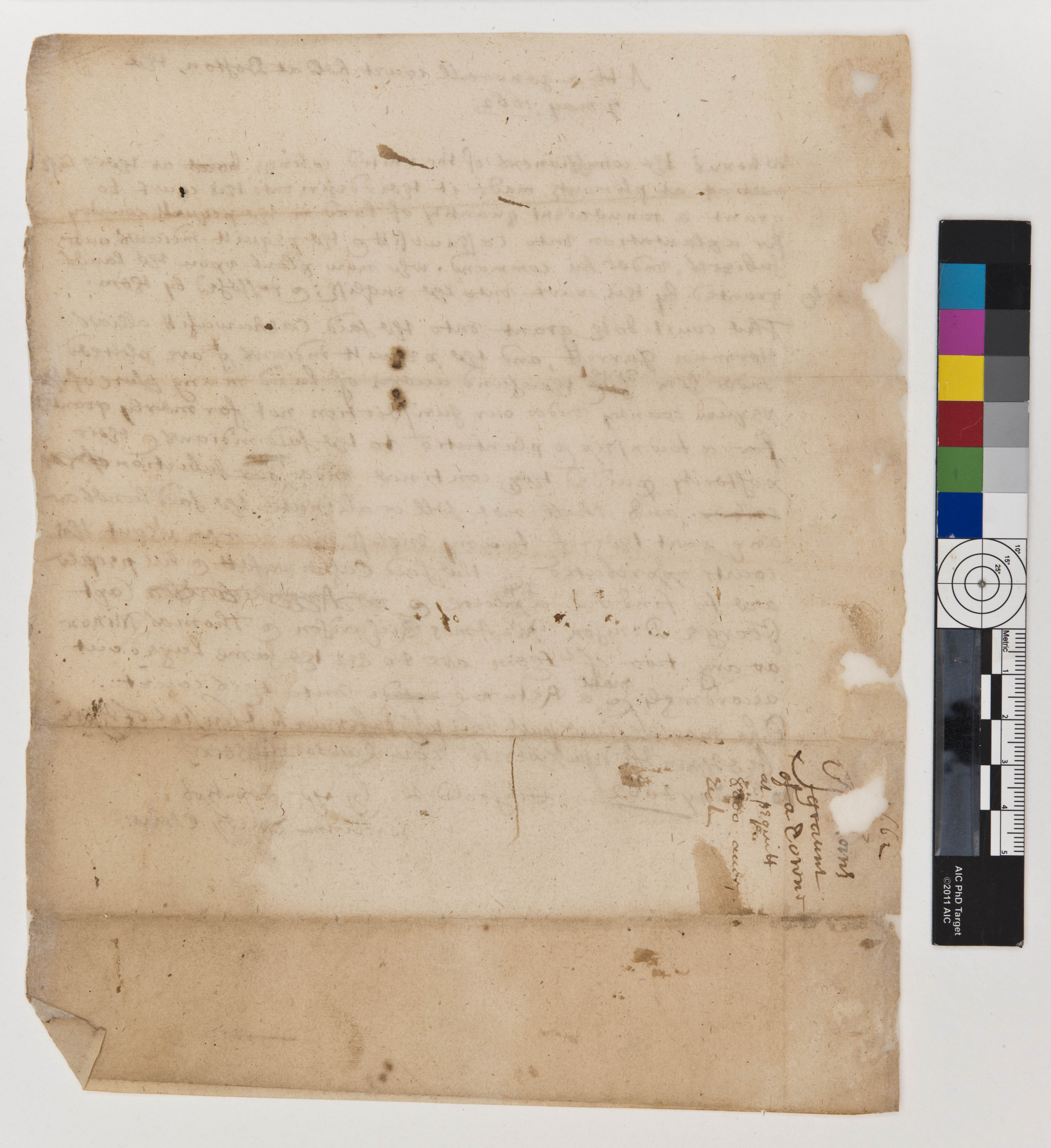 Denison, George (Mentioned within document); Garrett, Harman, -1678 (Mentioned within document); Richardson, Amos (Mentioned within document); Torrey, William, 1608-1690 (Attestor); Unknown (Recipient)