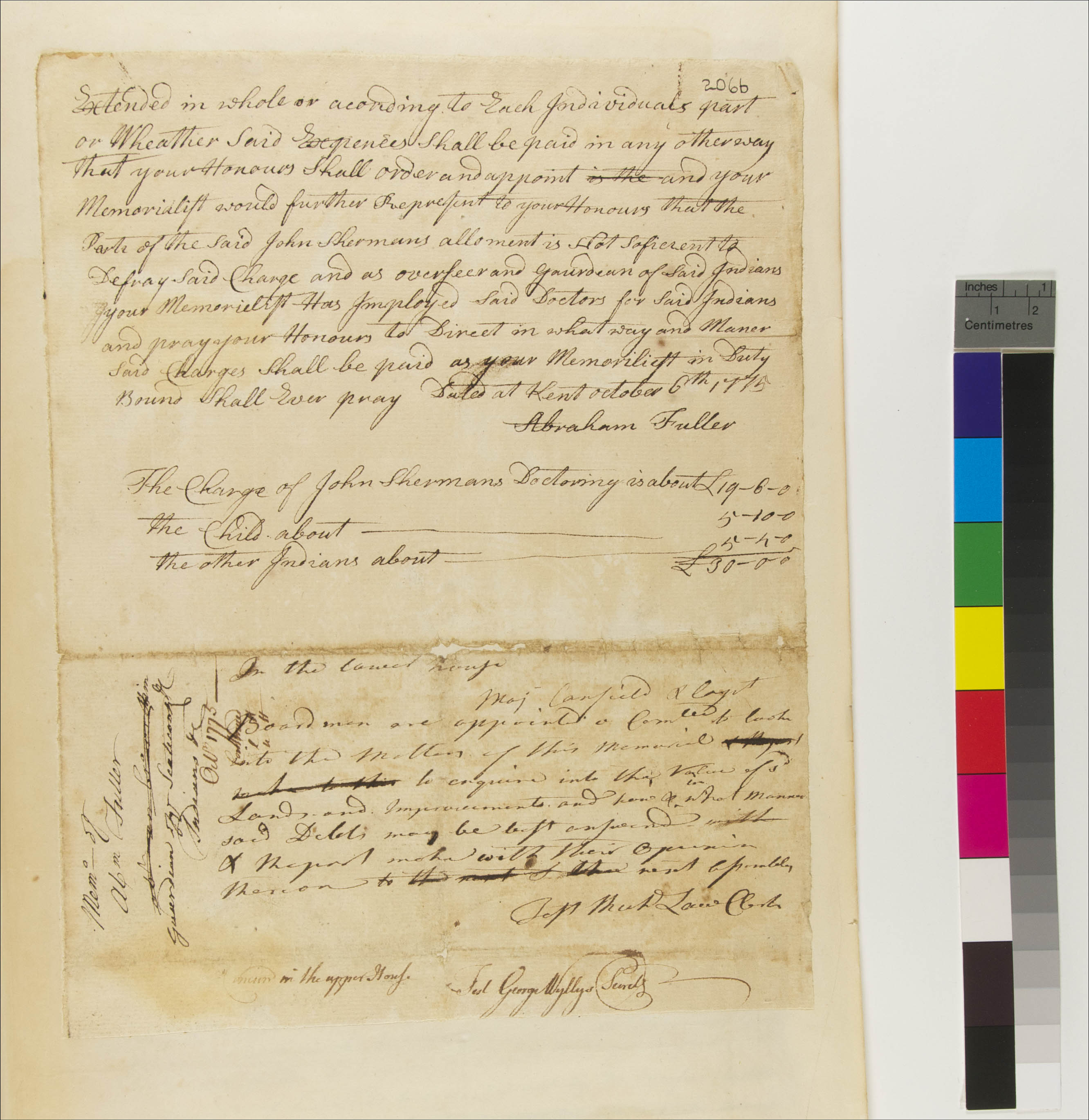 Memorial of Abraham Fuller, October 6, 1775, (1775.10.06.00), Grant-Costa, Paul, et. al., eds., Yale Indian Papers Project, Yale University, http://jake.library.yale.edu:8080/neips/data/html/1775.10.06.00/1775.10.06.00.html.