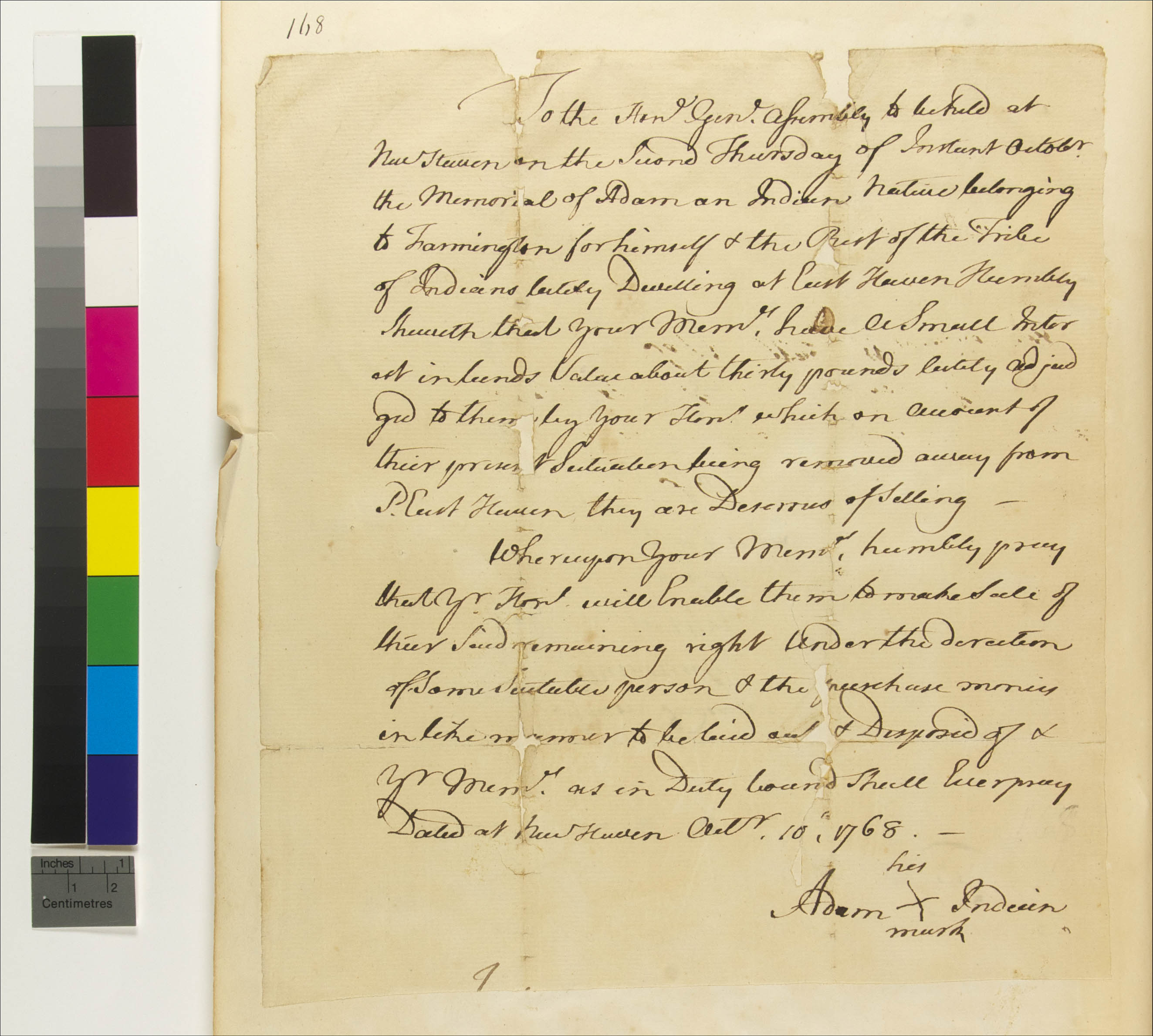 Memorial of Adam, October 10, 1768, (1768.10.10.00), Grant-Costa, Paul, et. al., eds., Yale Indian Papers Project, Yale University, http://jake.library.yale.edu:8080/neips/data/html/1768.10.10.00/1768.10.10.00.html.