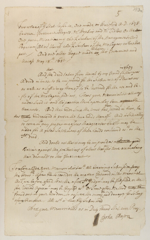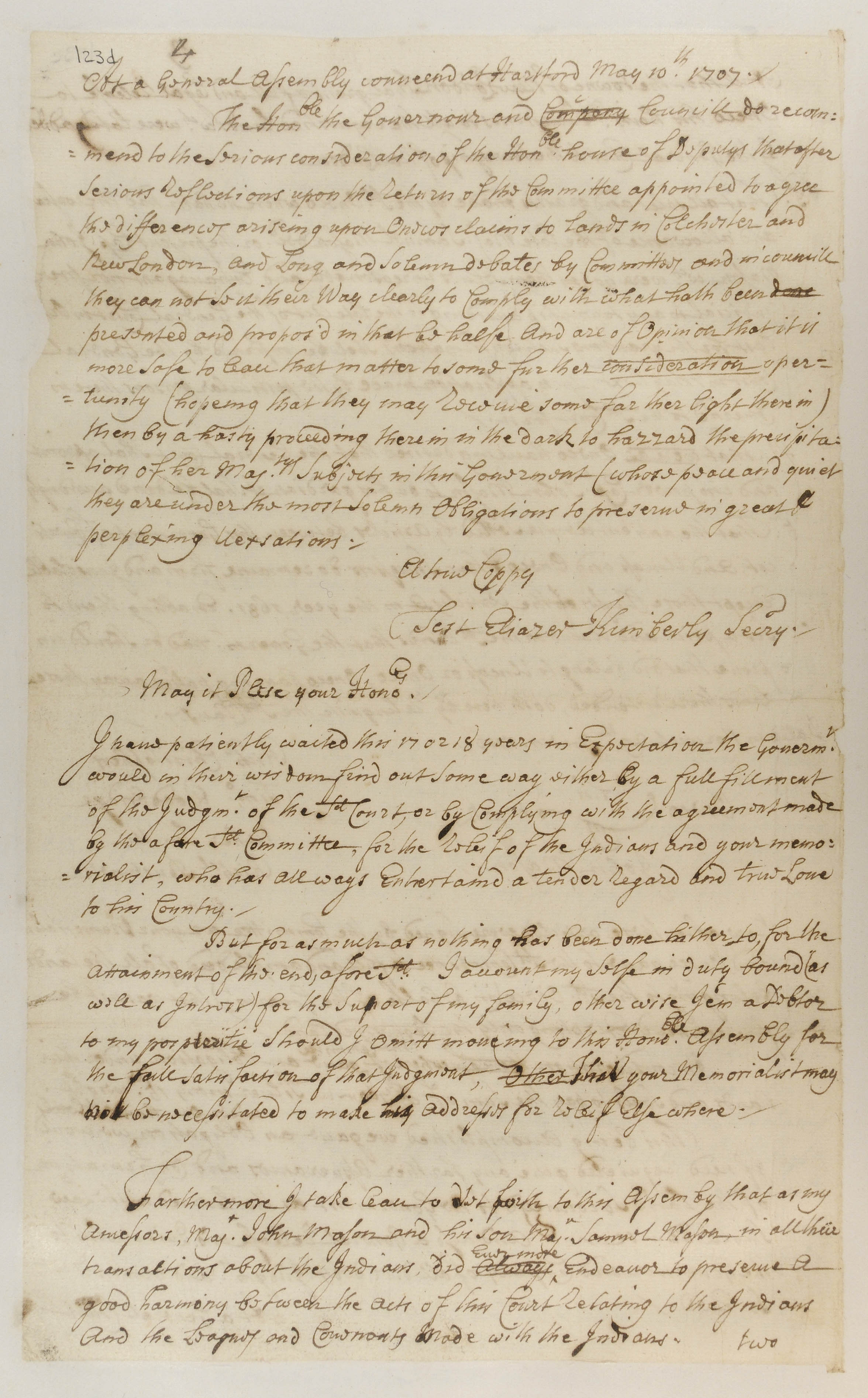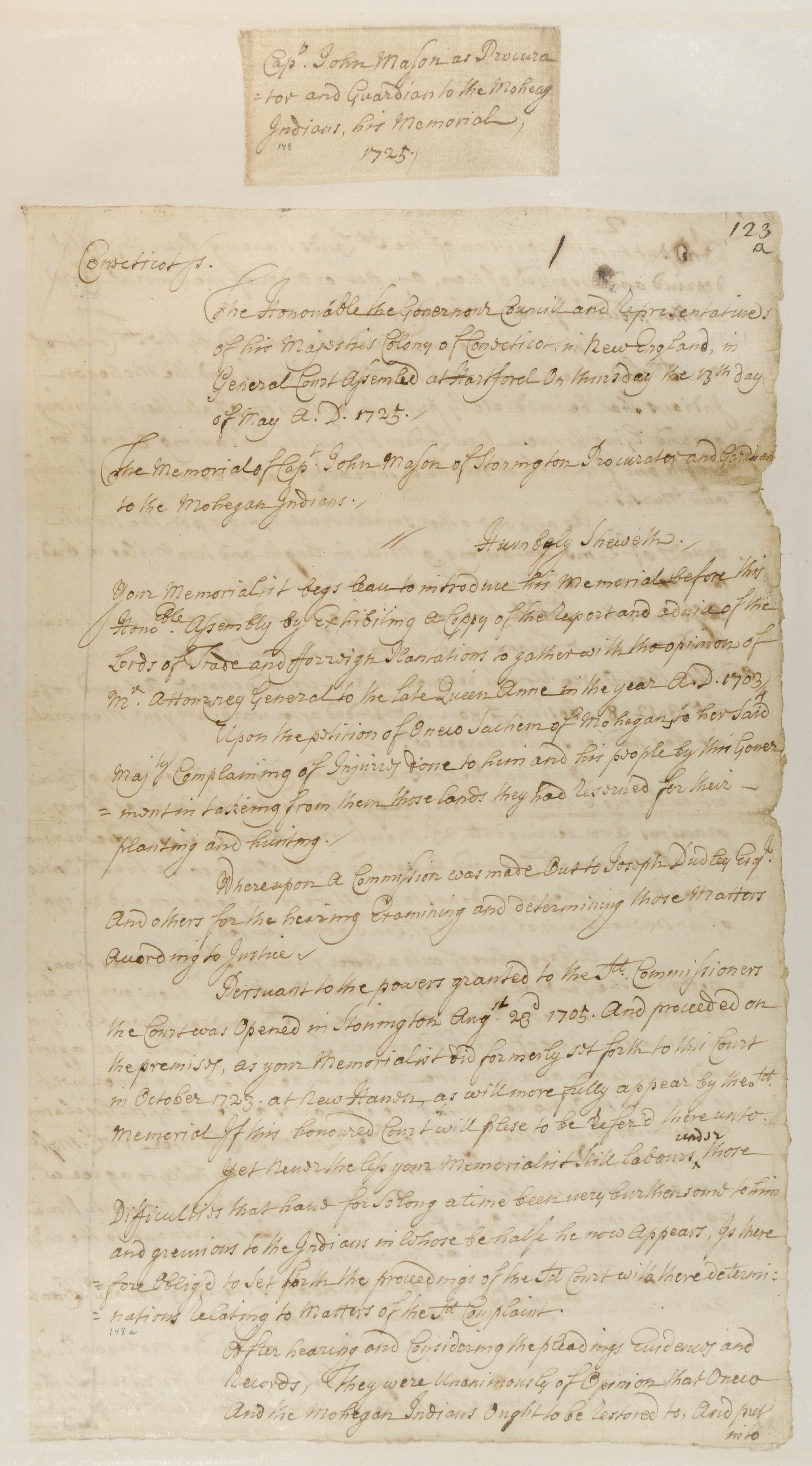 Memorial of Captain John Mason of Stonington, Procurator and Guardian of the Mohegan Indians, May 13, 1725, (1725.05.13.00), Grant-Costa, Paul, et. al., eds., Yale Indian Papers Project, Yale University, http://jake.library.yale.edu:8080/nei
