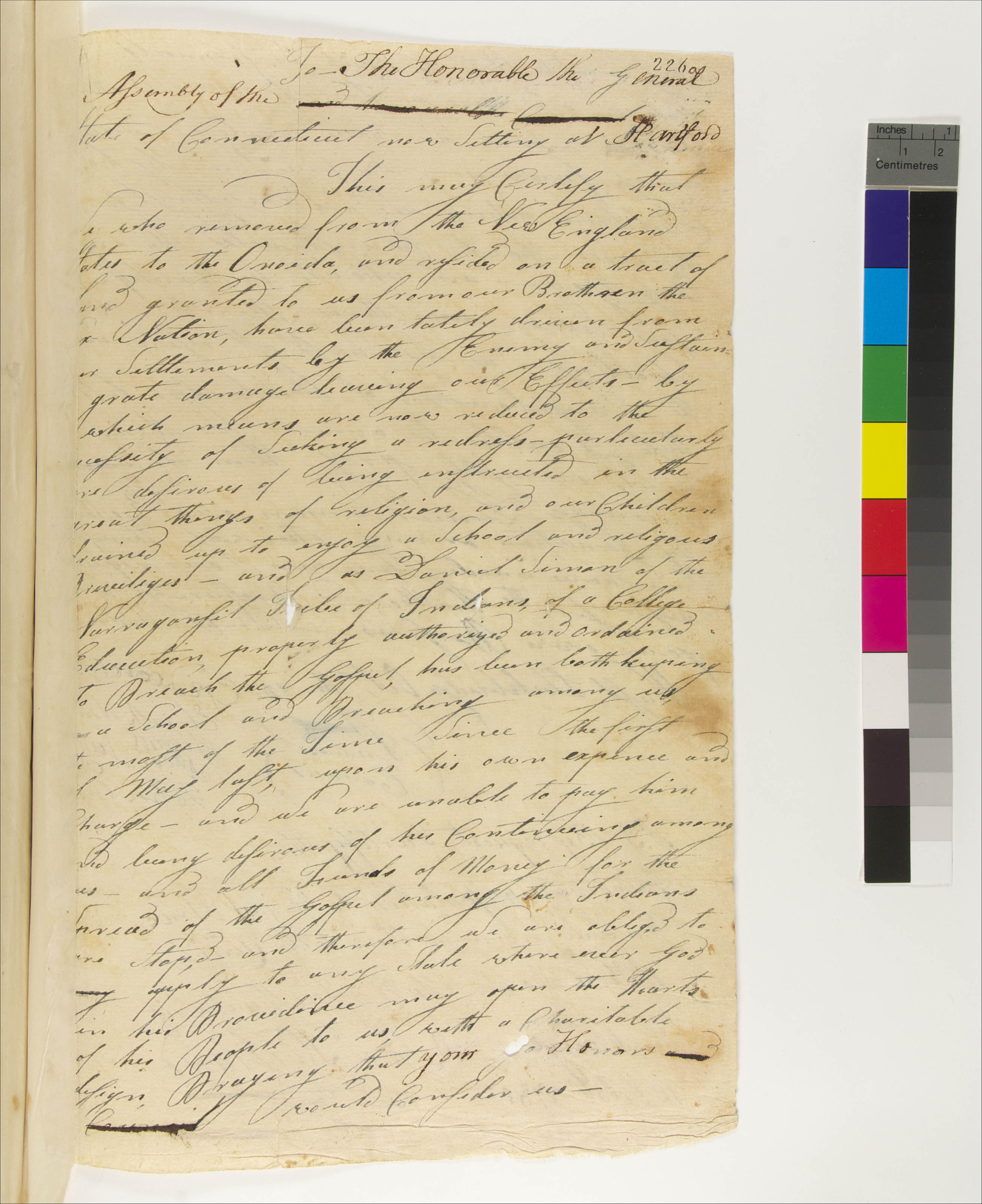 Abstract Ideas -- Charity; Abstract Ideas -- Paternalism; Education/Schools; Government -- Colonial -- Colony of Connecticut -- General Assembly; Government -- Tribal -- Brothertown; Law -- Legislative Process -- Petitions -- Rejected; Migration/Immigration -- Religious -- Brothertown Movement; Relations -- Colonial Affairs; Relations -- Tribal Affairs; Religion/Beliefs -- Christianity -- Missions/Praying Towns; Religion/Beliefs -- Christianity; Tribes/Communities -- Brothertown; Tribes/Communities -- Narragansett; Tribes/Communities -- Six Nations; Tribes/Communities -- Tunxis; YIPP -- Colony of Connecticut Collection, 1603-1783