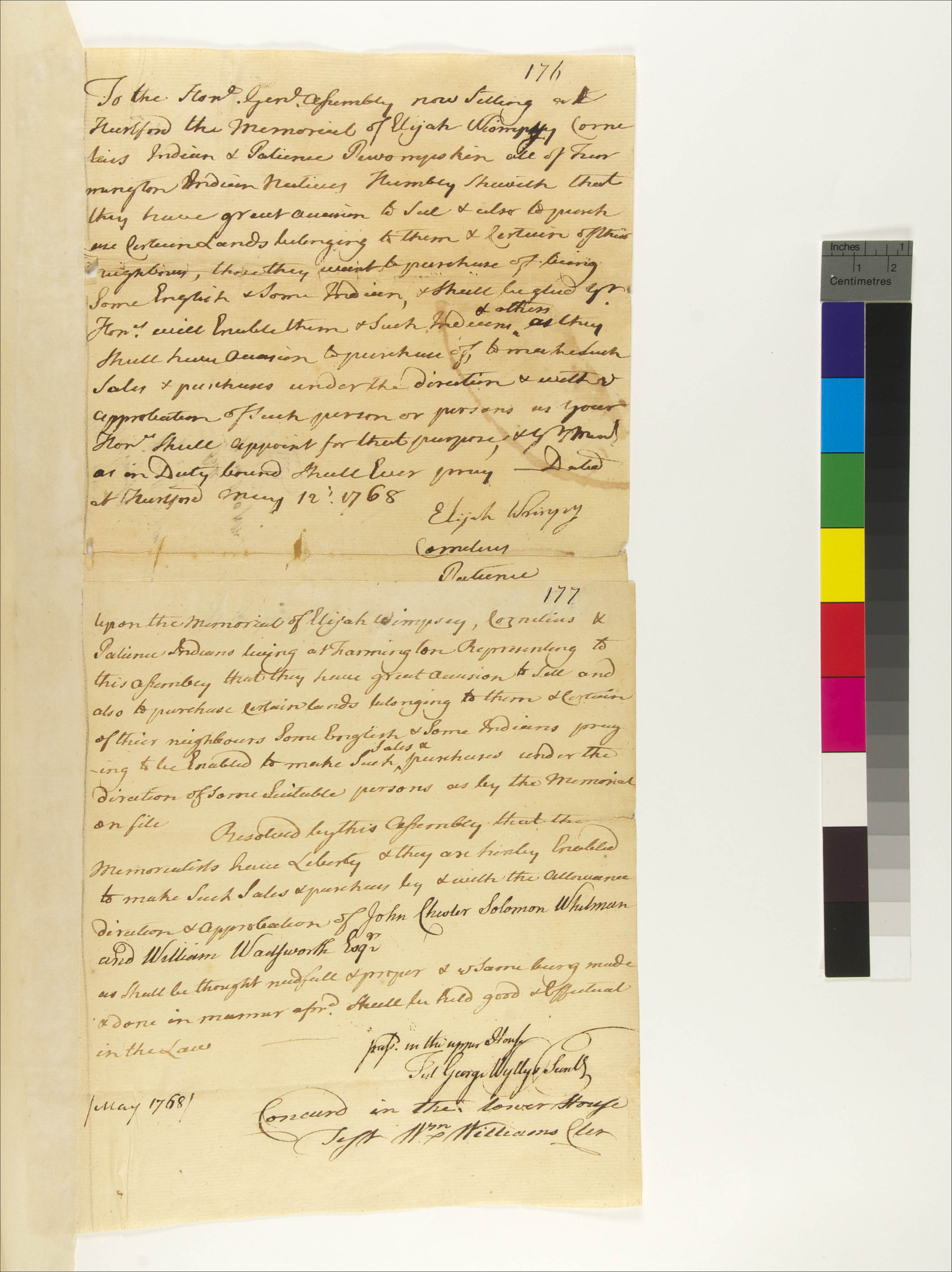 Memorial of Elijah Wampy, Cornelius, and Patience Pewompskin, May 12, 1768, (1768.05.12.00), Grant-Costa, Paul, et. al., eds., Yale Indian Papers Project, Yale University, http://jake.library.yale.edu:8080/neips/data/html/1768.05.12.00/1768.05.12.00.html.