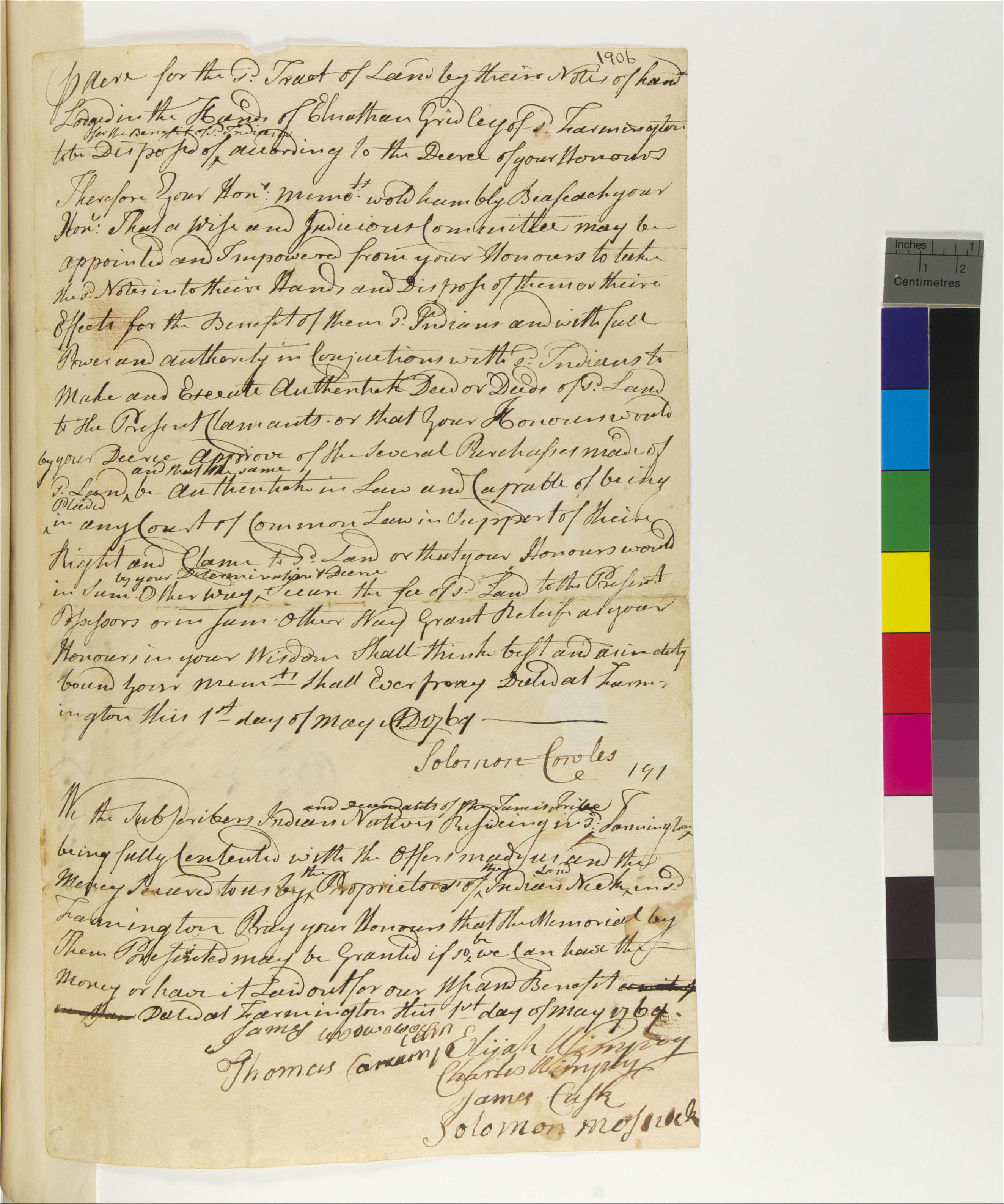 Memorial of Solomon Cowles with an Endorsement of the Tunxis, May 1, 1769, (1769.05.01.00), Grant-Costa, Paul, et. al., eds., Yale Indian Papers Project, Yale University, http://jake.library.yale.edu:8080/neips/data/html/1769.05.01.00/1769.05.01.00.html.