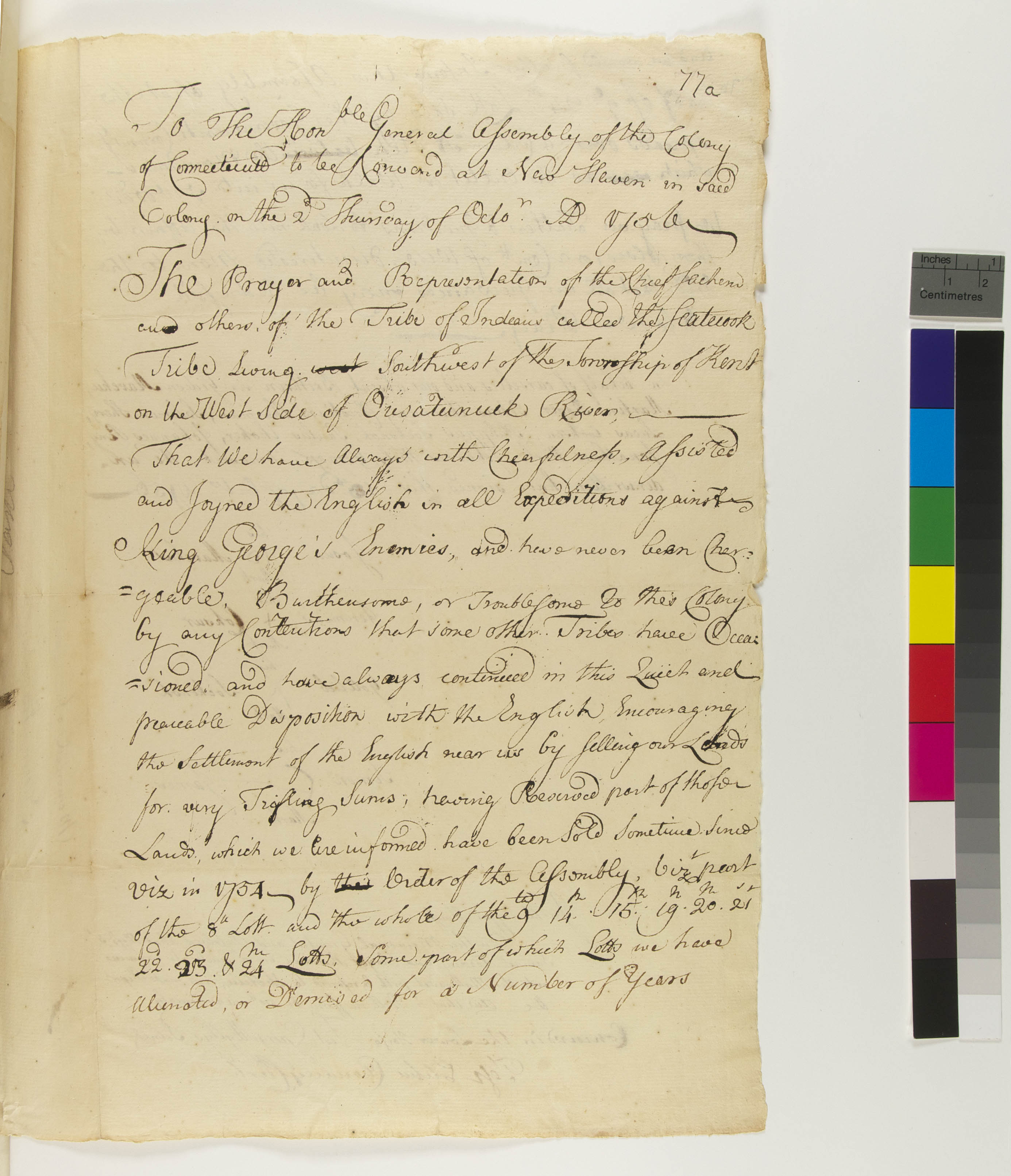Abstract Ideas -- Fidelity; Government -- Colonial -- Colony of Connecticut -- General Assembly; Government -- Colonial -- Colony of Connecticut -- Governors; Government -- Tribal -- Schaghticoke; Land -- Conveyances -- Sale; Land -- Use -- Access; Landforms -- Aquatic -- Rivers -- Housatonic; Landforms -- Terrestrial -- Hills; Law -- Legislative Process -- Acts/Resolves; Law -- Legislative Process -- Appointment; Law -- Legislative Process -- Petitions -- Accepted; Relations -- Colonial Affairs; Relations -- Tribal Affairs; Tribes/Communities -- Schaghticoke; YIPP -- Colony of Connecticut Collection, 1603-1783