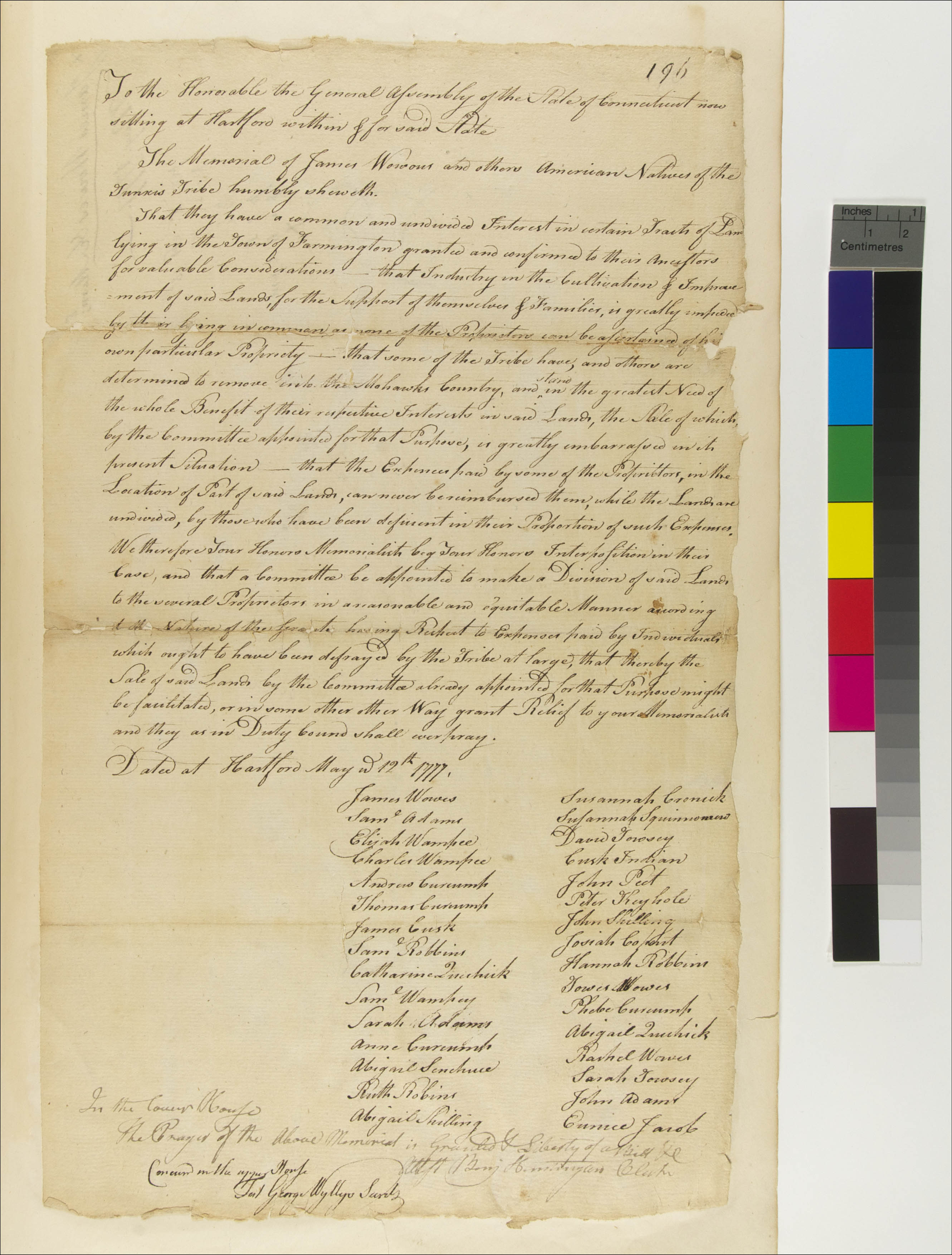 Adams, John (Tunxis) (Author); Adams, Samuel (Tunxis) (Author); Adams, Sarah (Author); Cossout, Josiah (Author); Cronnick, Susannah (Author); Curricomp, Andrew, 1747- (Author); Curricomp, Anne (Author); Curricomp, Phebe (Author); Curricomp, Thomas (Author); Cusk (Author); Cusk, James (Author); Jacobs, Eunice (Author); Keyhole, Peter (Author); Peet, John (Author); Quichick, Abigail (Author); Robbins, Hannah (Author); Robbins, Ruth (Author); Robbins, Samuel (Author); Sanchuse, Abigail (Author); Shilling, Abigail (Author); Shilling, John (Author); Squinnomow, Susanah (Author); Towsey, David (Author); Towsey, Sarah (Author); Wampey, Charles (Author); Wampey, Elijah, 1734-1802 (Author); Wampey, Samuel (Author); Wawowos, James (Author); Wawowos, Rachel (Author); Wawowos, Towes (Author)