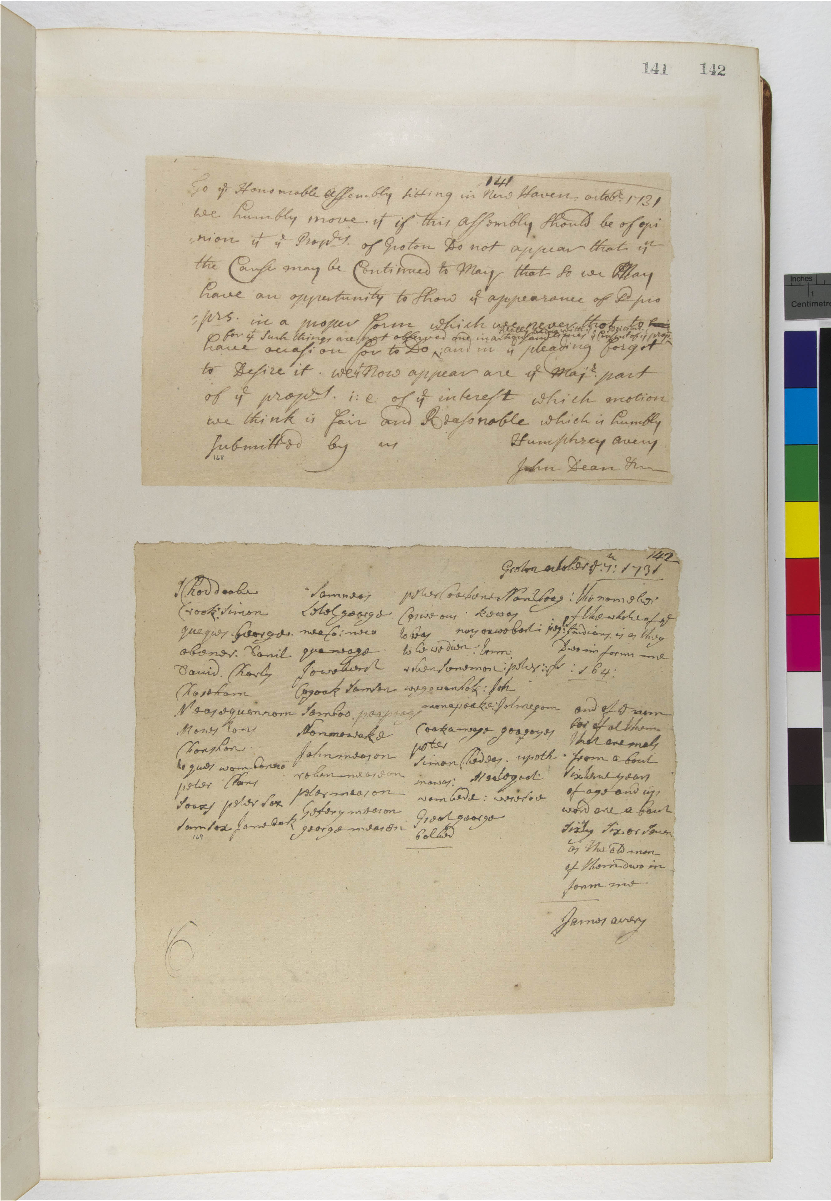 Bolhead (Mentioned within document); Cassasinamon, Robin (Mentioned within document); Charley (Pequot) (Mentioned within document); Cheddes, Simon (Mentioned within document); Chorshon (Mentioned within document); Chosham (Mentioned within document); Coacheme, Peter (Mentioned within document); Coakawege (Mentioned within document); Corweons (Mentioned within document); Daniel (Pequot) (Mentioned within document); David (Pequot) (Mentioned within document); Geogoyes (Mentioned within document); George (little) (Pequot) (Mentioned within document); George (Pequot) (Mentioned within document); Great George (Mentioned within document); Joh (Mentioned within document); Johnegon (Mentioned within document); Joweberch (Mentioned within document); Jowebuck (Mentioned within document); Kewas (Mentioned within document); Meazon, George (Pequot) (Mentioned within document); Meazon, Jeffery (Pequot) (Mentioned within document); Meazon, John (Pequot) (Mentioned within document); Meazon, Peter (Pequot) (Mentioned within document); Meazon, Robin (Pequot) (Mentioned within document); Mectqor (Mentioned within document); Moas (Mentioned within document); Monapoake (Mentioned within document); Moses (Pequot) (Mentioned within document); Neasequonnom (Mentioned within document); Nonnewake (Mentioned within document); NonVoag (Mentioned within document); Noyoswebert (Mentioned within document); Obenerr (Mentioned within document); Peapeges (Mentioned within document); Peter (Pequot) (Mentioned within document); Peter II (Pequot) (Mentioned within document); Quaques (Mentioned within document); Quaweage (Mentioned within document); Samboa (Mentioned within document); Samneos (Mentioned within document); Samson, Cogoak (Mentioned within document); Scadoab (Mentioned within document); Simon, Crook (Mentioned within document); Sox (Mentioned within document); Sox, Peter (Mentioned within document); Sox, Sam (Mentioned within document); Tobeas (Mentioned within document); Tobedien (Mentioned within document); Upeth (Mentioned within document); Wegowanhok (Mentioned within document); Wombede (Mentioned within document); Wombonno, Toques (Mentioned within document); Wrietoe (Mentioned within document)