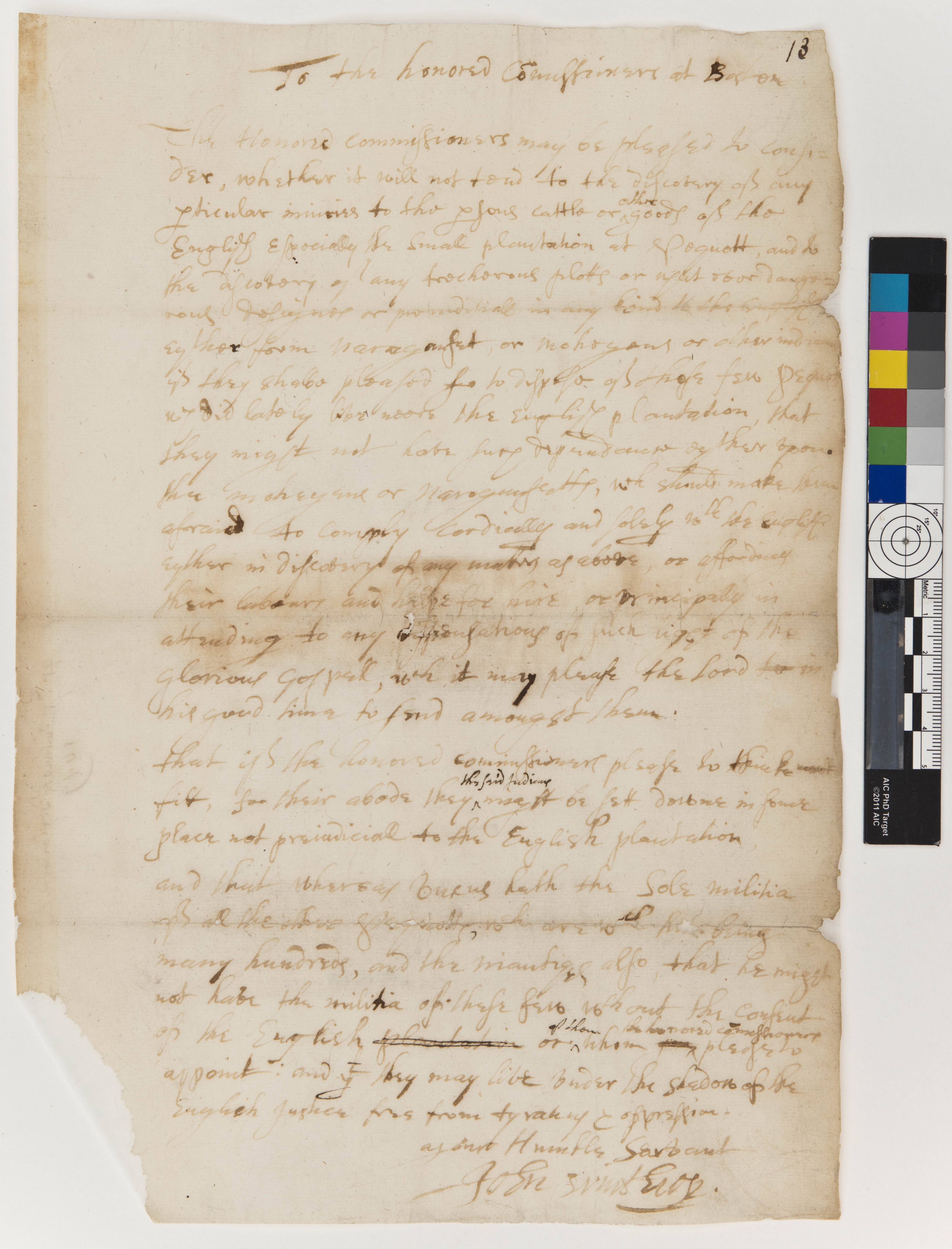 Petition of John Winthrop, Jr. to the Commissioner of the United Colonies, 1649, (1649.00.00.00), Grant-Costa, Paul, et. al., eds., Yale Indian Papers Project, Yale University, http://jake.library.yale.edu:8080/neips/data/html/1649.00.00.00/1649.00.00.00.html.