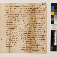 Government -- Colonial -- Massachusetts Bay Colony -- Governors; Government -- Colonial -- Massachusetts Bay Colony -- Massachusetts Council; Government -- Colonial -- Massachusetts Bay Colony; Household Goods -- Bed Clothes/Linen; Household Goods -- Kettles; Law -- Criminal Actions -- Felonies -- Murder; Law -- Legislative Process -- Petitions; Relations -- Colonial Affairs; Relations -- Violence; Tribes/Communities -- Praying Indians; YIPP -- Massachusetts Bay Colony Collection, 1628-1684