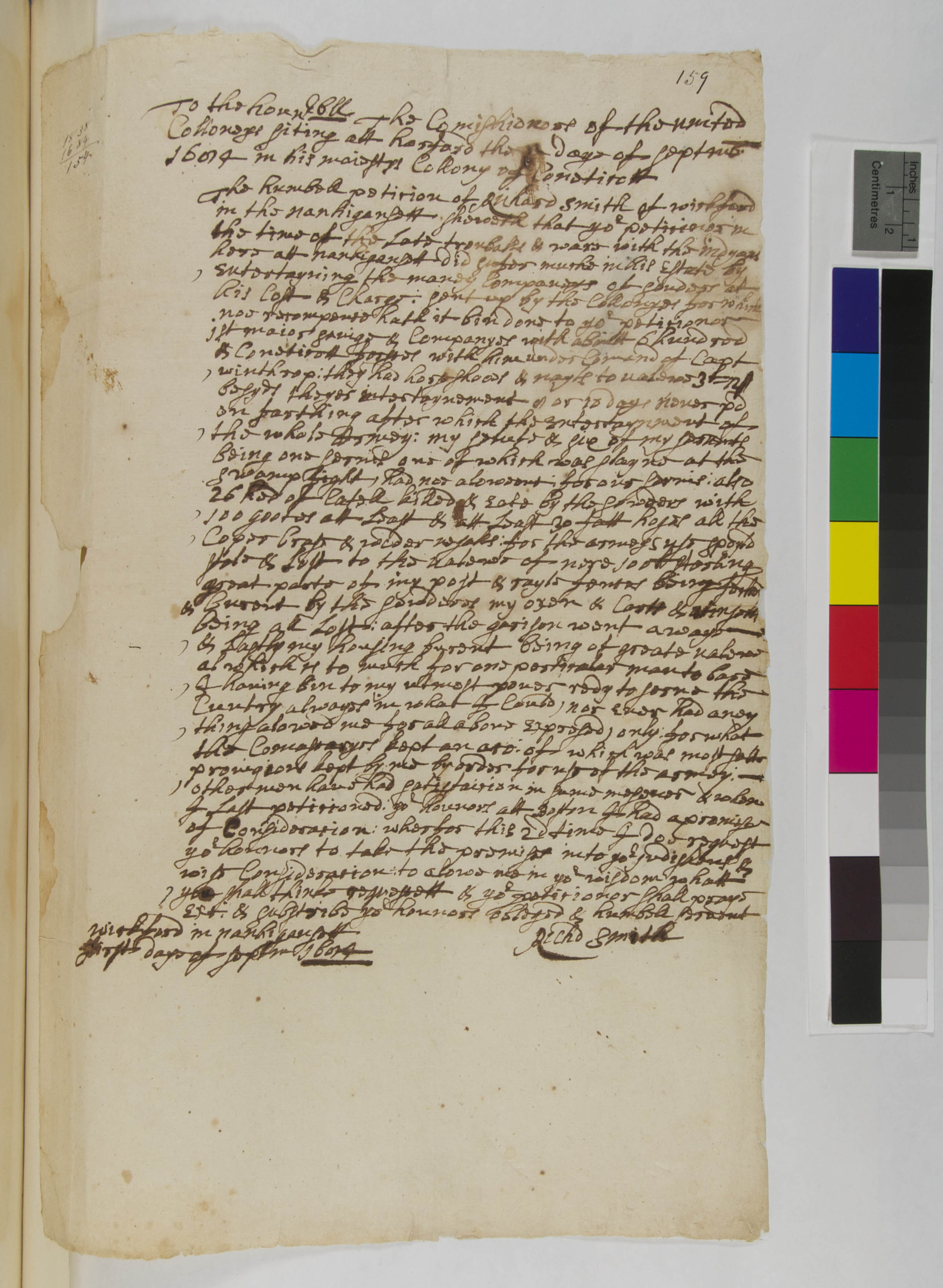 Petition of Richard Smith to the Commissioners of the United Colonies