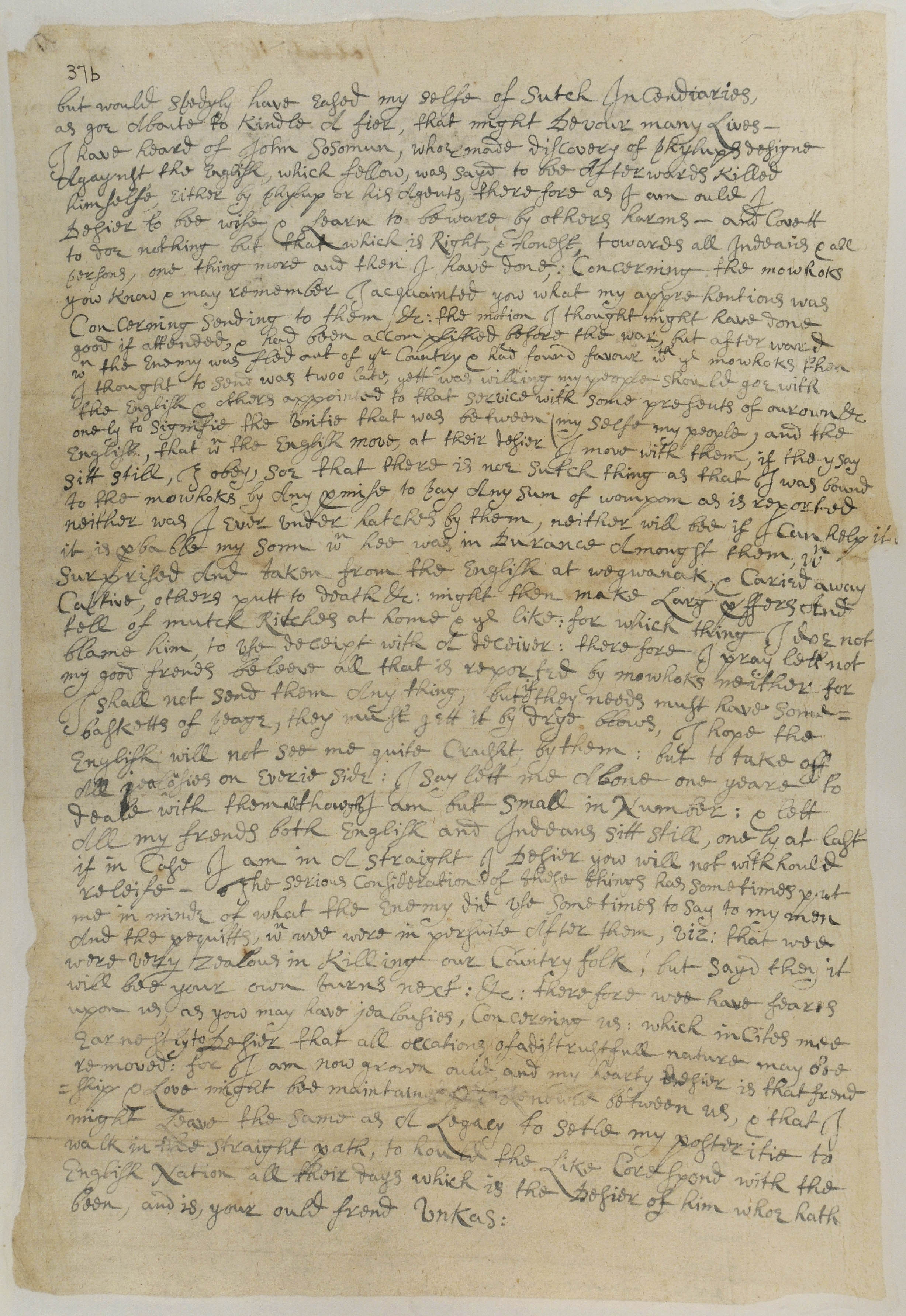 Fitch, James, 1622-1702 (Mentioned within document); Metacom (Mentioned within document); Miantonomo (Mentioned within document); Nanontanoe (Mentioned within document); Owaneco, 1640- (Mentioned within document); Paapeeguenoo (Mentioned within document); Post, Abraham (Mentioned within document); Sassamon, John (Mentioned within document); Shebanow (Mentioned within document); Trustysteed (Mentioned within document); Uncas, 1590-1683 (Mentioned within document); Weebucks (Mentioned within document)