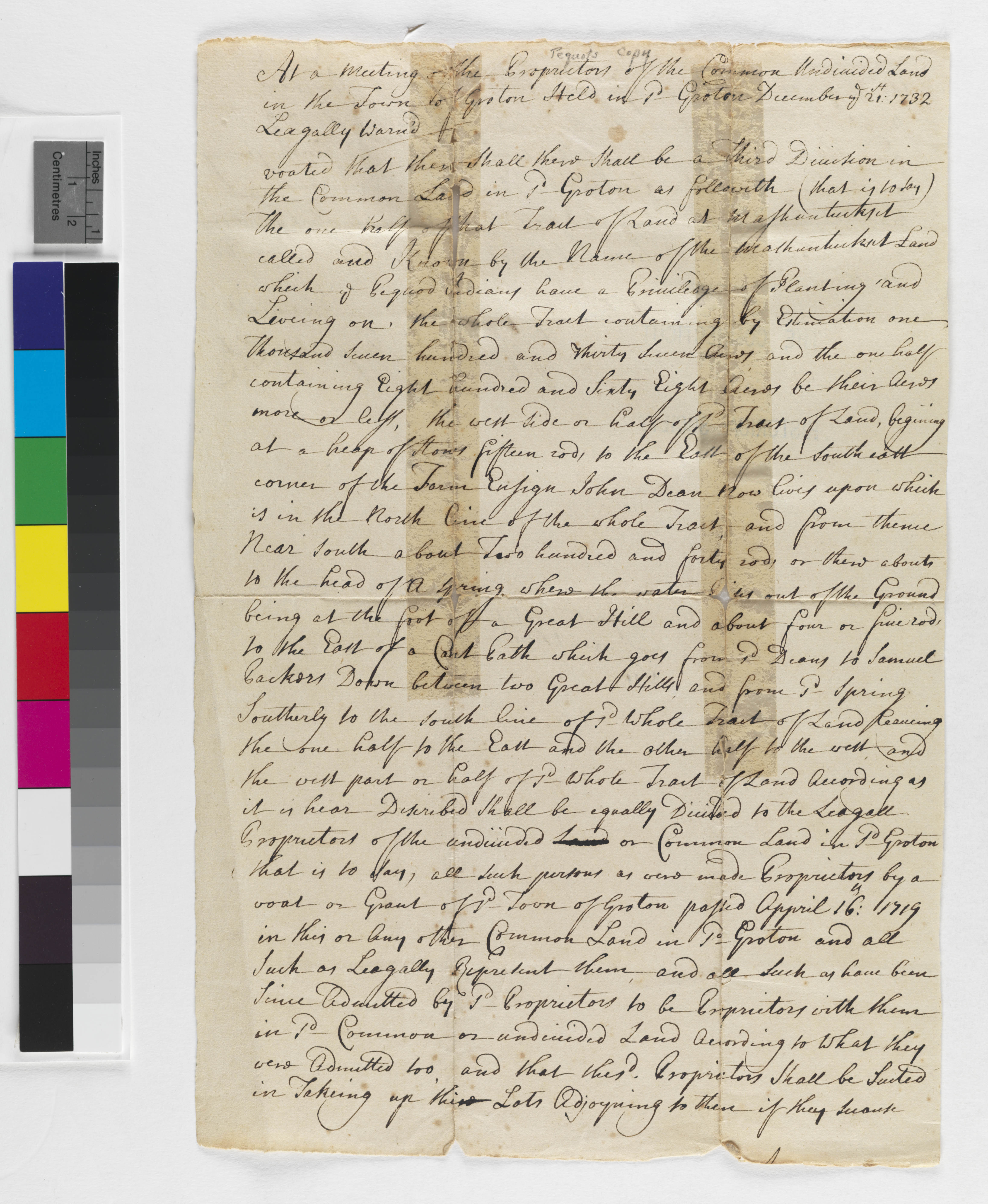 Government -- Colonial -- Colony of Connecticut -- Towns -- Groton; Land -- Common -- Division; Land -- Description -- Boundaries; Land -- Reservation/Reserve -- Pequot -- Western; Land -- Use -- Improvement; Land -- Use -- Timber/Firewood; Landforms -- Aquatic -- Springs; Landforms -- Terrestrial -- Forests; Landforms -- Terrestrial -- Hills; Relations -- Colonial Affairs; Relations -- Tribal Affairs; Tribes/Communities -- Pequot -- Western; YIPP -- Colony of Connecticut Collection, 1603-1783
