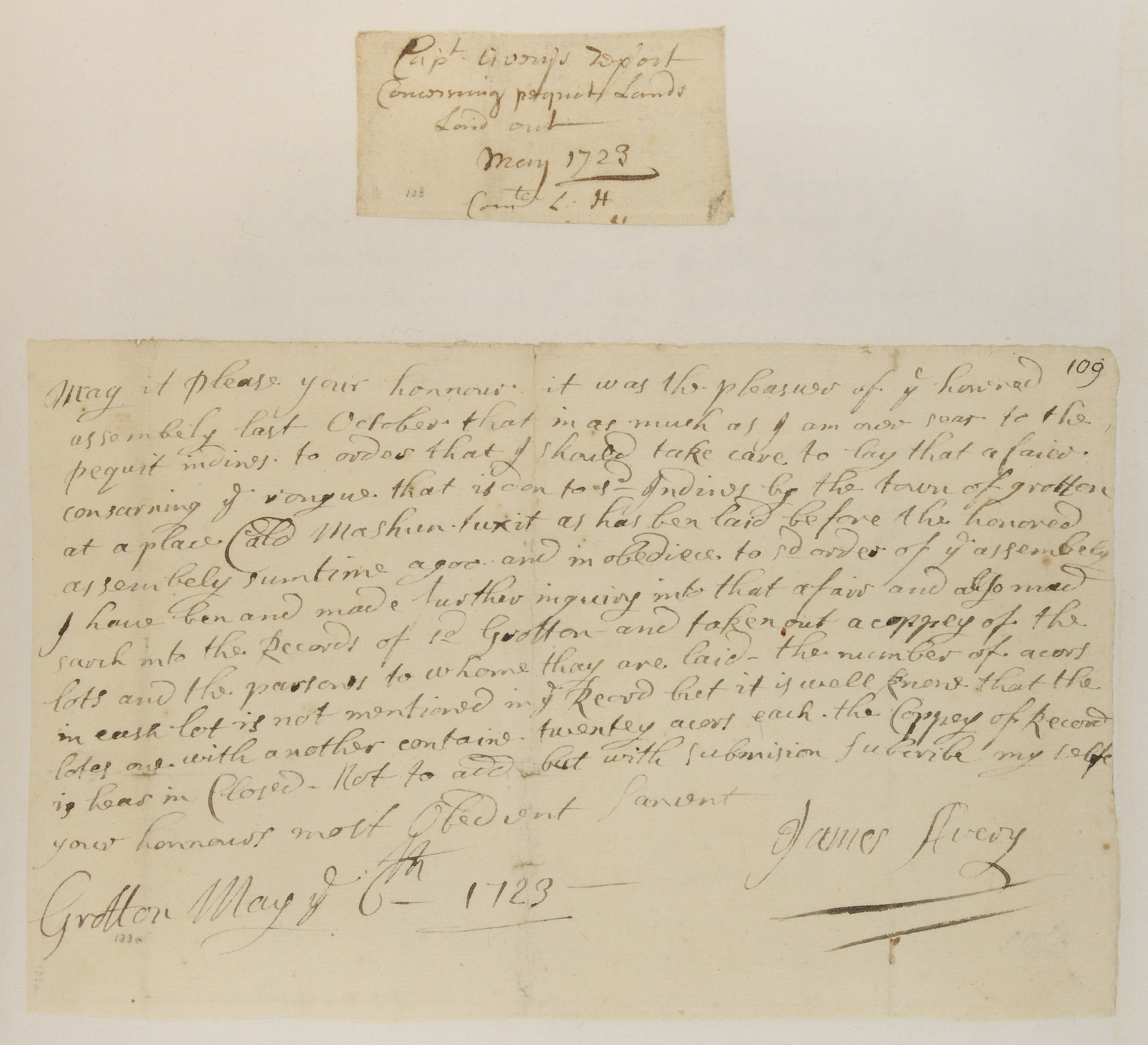 Government -- Colonial -- Colony of Connecticut -- Guardians/Overseers; Government -- Colonial -- Colony of Connecticut -- Towns -- Groton; Government -- Colonial -- Colony of Connecticut; Land -- Common; Land -- Complaints; Land -- Conveyances; Land -- Reservation/Reserve -- Pequot -- Western; Law -- Legislative Process -- Reports; Relations -- Colonial Affairs; Relations -- Tribal Affairs; Tribes/Communities -- Pequot -- Western; YIPP -- Colony of Connecticut Collection, 1603-1783