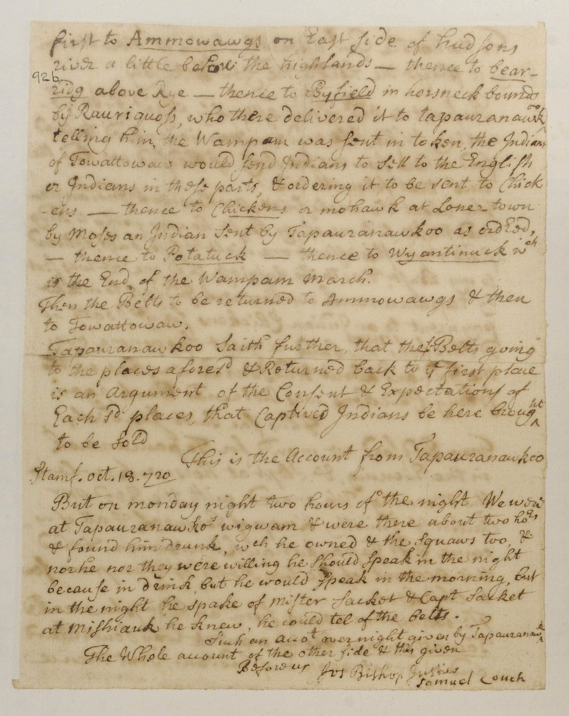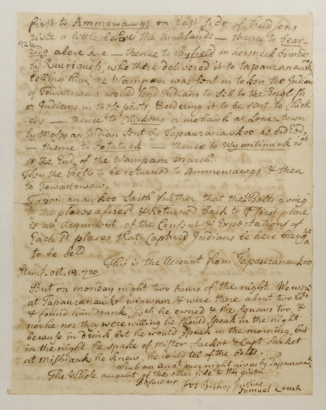 Report regarding Wampum Exchange, October 18, 1720, (1720.10.18.00), Grant-Costa, Paul, et. al., eds., Yale Indian Papers Project, Yale University, http://jake.library.yale.edu:8080/neips/data/html/1720.10.18.00/1720.10.18.00.html.