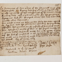 Images may be used for purposes of research, private study, or education. To publish, exhibit, or broadcast this image, please contact the Massachusetts Archives to receive a Permission to Publish form: http://www.sec.state.ma.us/arc/, 220 Morrissey Blvd., Boston, MA 02125; Reference Desk: 617-727-2816 ext. 222; Email:†archives@sec.state.ma.us