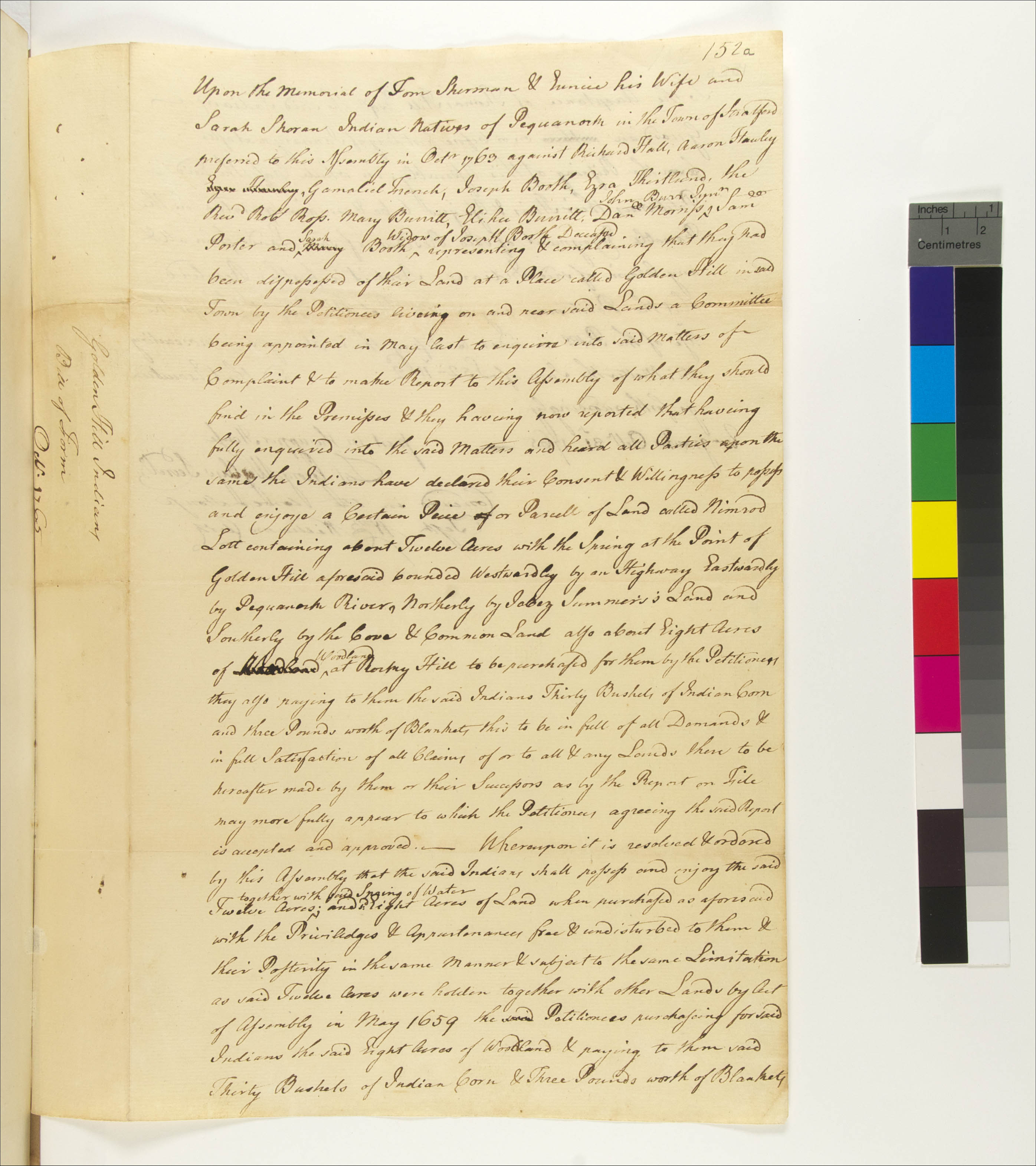 Resolve regarding the Golden Hill Indians, October 31, 1765, (1765.10.31.00), Grant-Costa, Paul, et. al., eds., Yale Indian Papers Project, Yale University, http://jake.library.yale.edu:8080/neips/data/html/1765.10.31.00/1765.10.31.00.html.